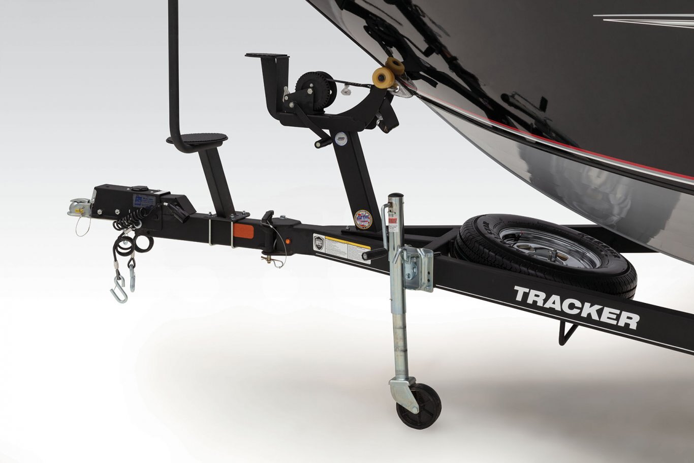 - Heavy-duty winch w/nylon strap & bow safety strap