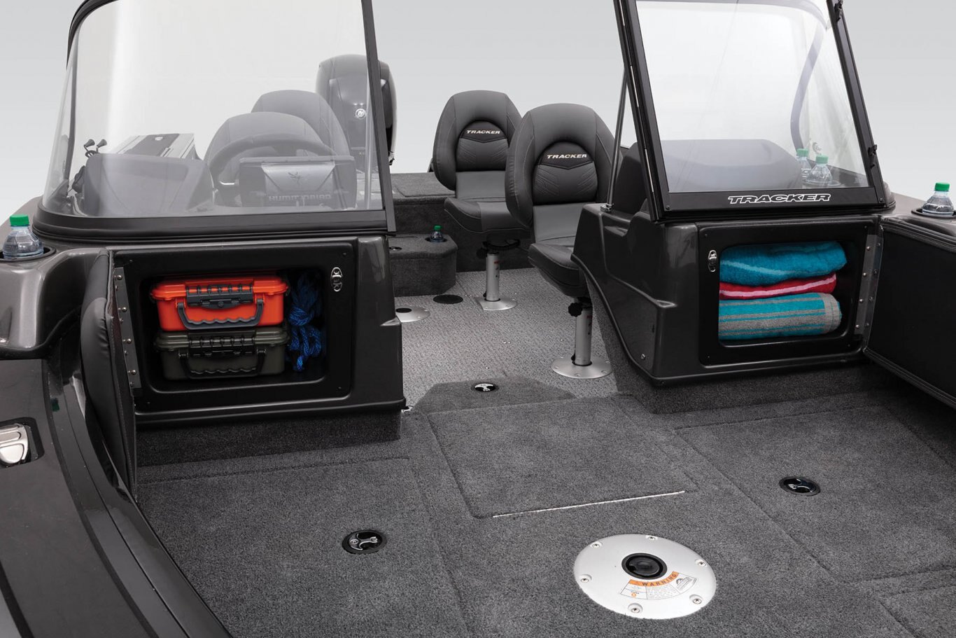 - Open storage compartment in bow panel