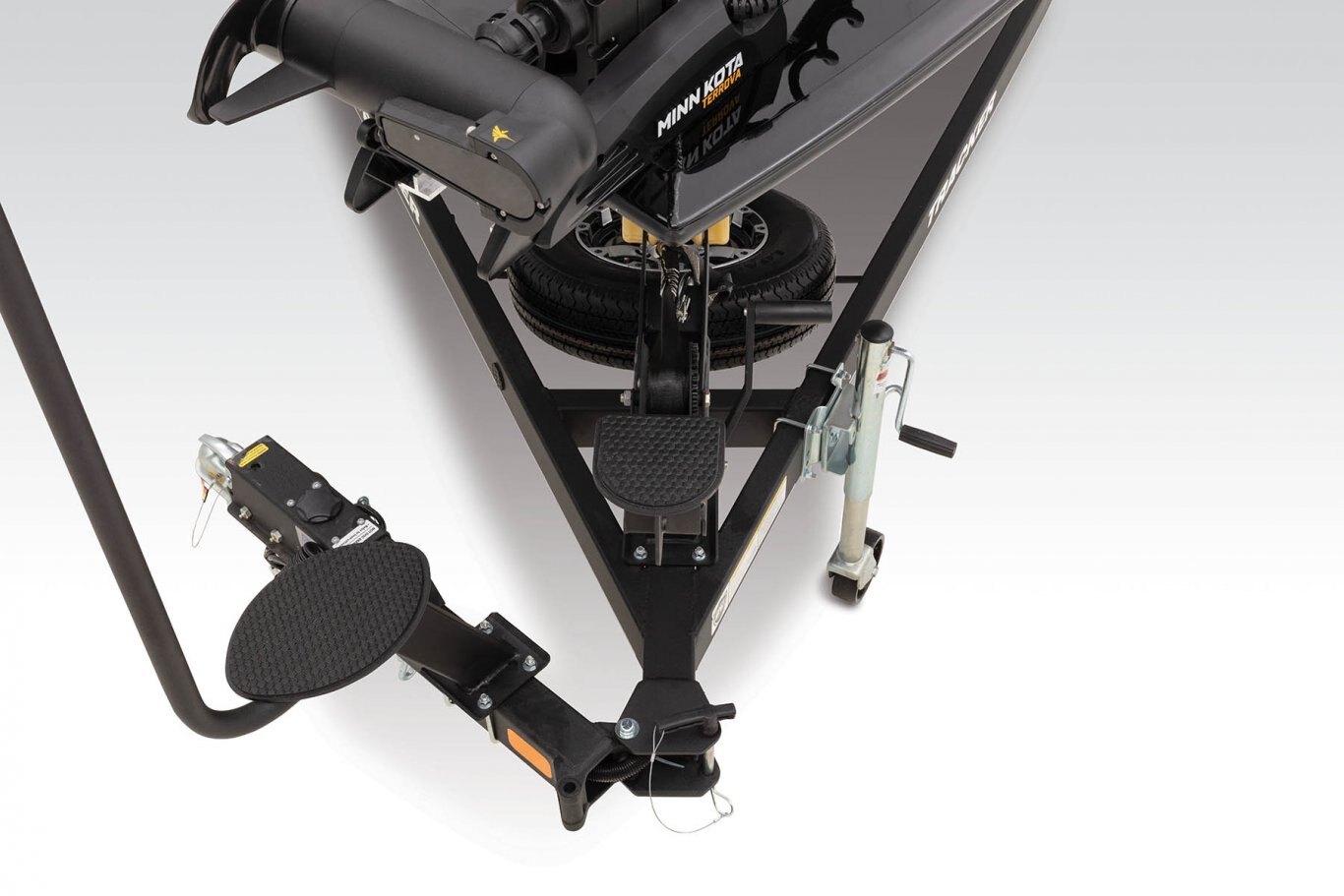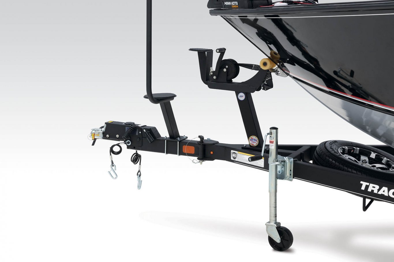 - Heavy-duty winch w/nylon strap & bow safety strap