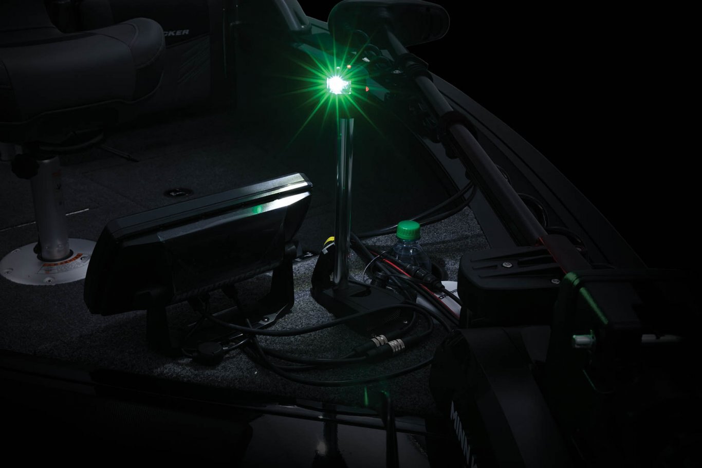 - Bow panel w/trolling motor receptacle, 12V outlet, bow aerator switch & trim switch