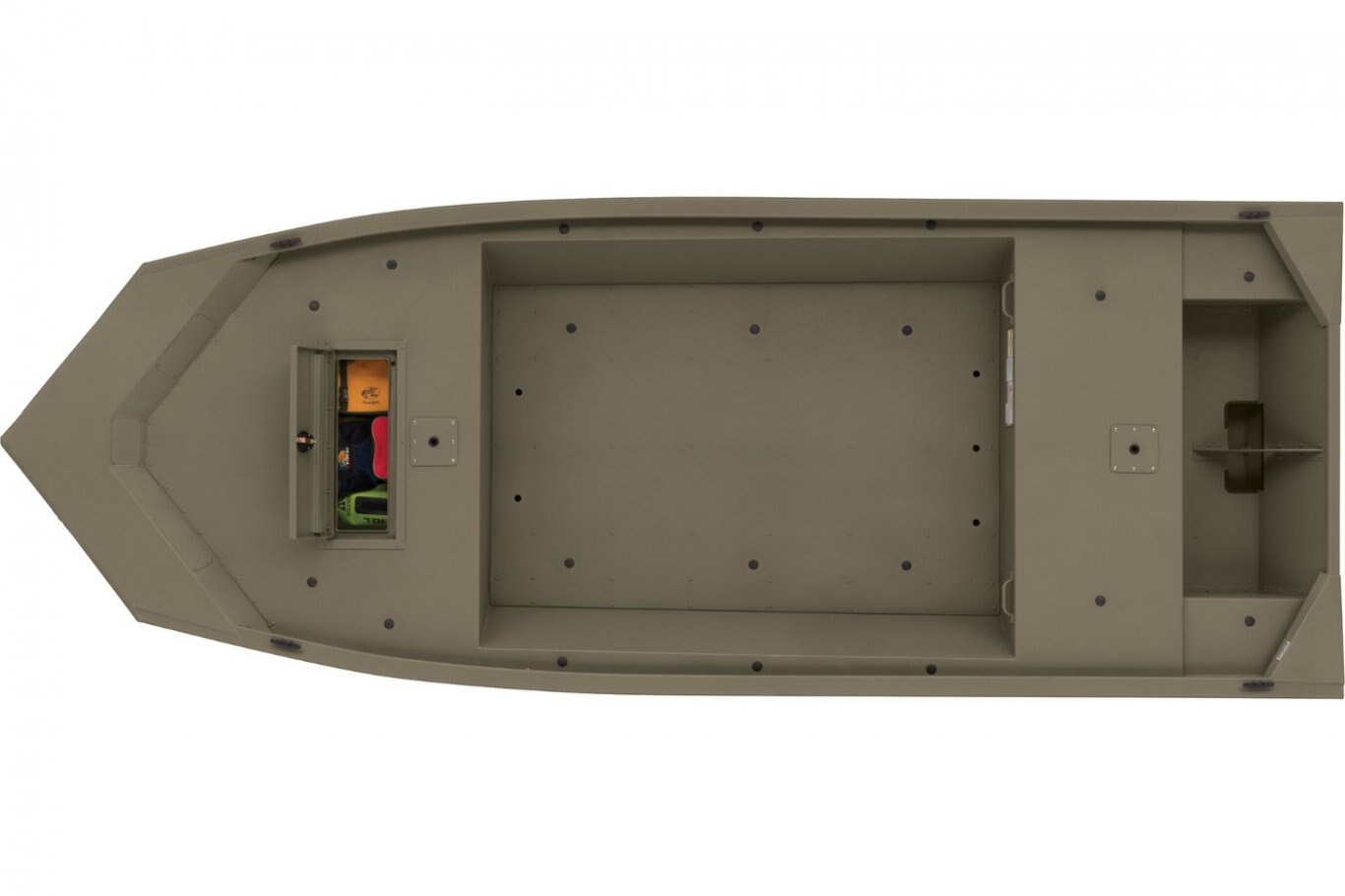 The 1648 has a thick .190 aluminum cockpit floor plus a big front deck with a lockable storage compartment. The 7° deadrise Mod V hull provides a smooth, dry ride, and it's finished with our exclusive Forest Green powder-coat (as well as SURE TREAD™ texture on the floor). And like all TRACKER boats, it’s backed by the TRACKER PROMISE—the best factory warranty in aluminum boats.