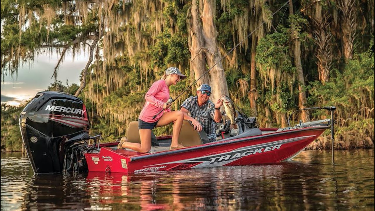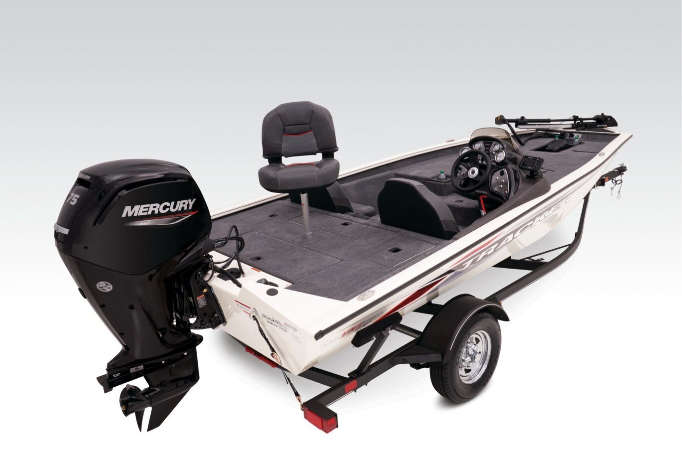 Every TRACKER® boat package also comes factory-rigged with a Mercury® outboard, Minn Kota® trolling motor and Lowrance® fishfinder. And it's all backed by the TRACKER PROMISE—the best factory warranty in aluminum boats.