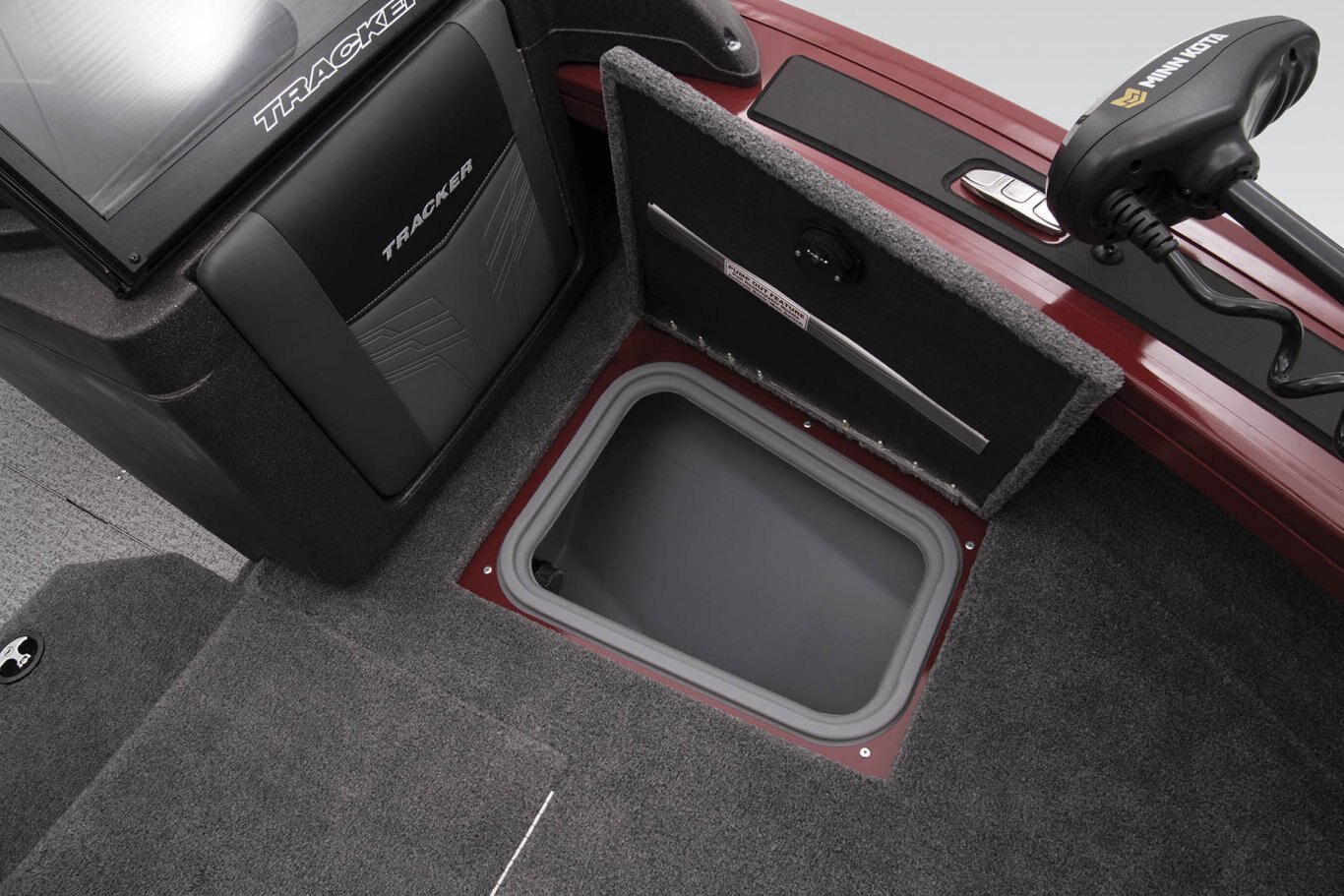 - In-floor center trolling battery storage compartment for up to 3 batteries