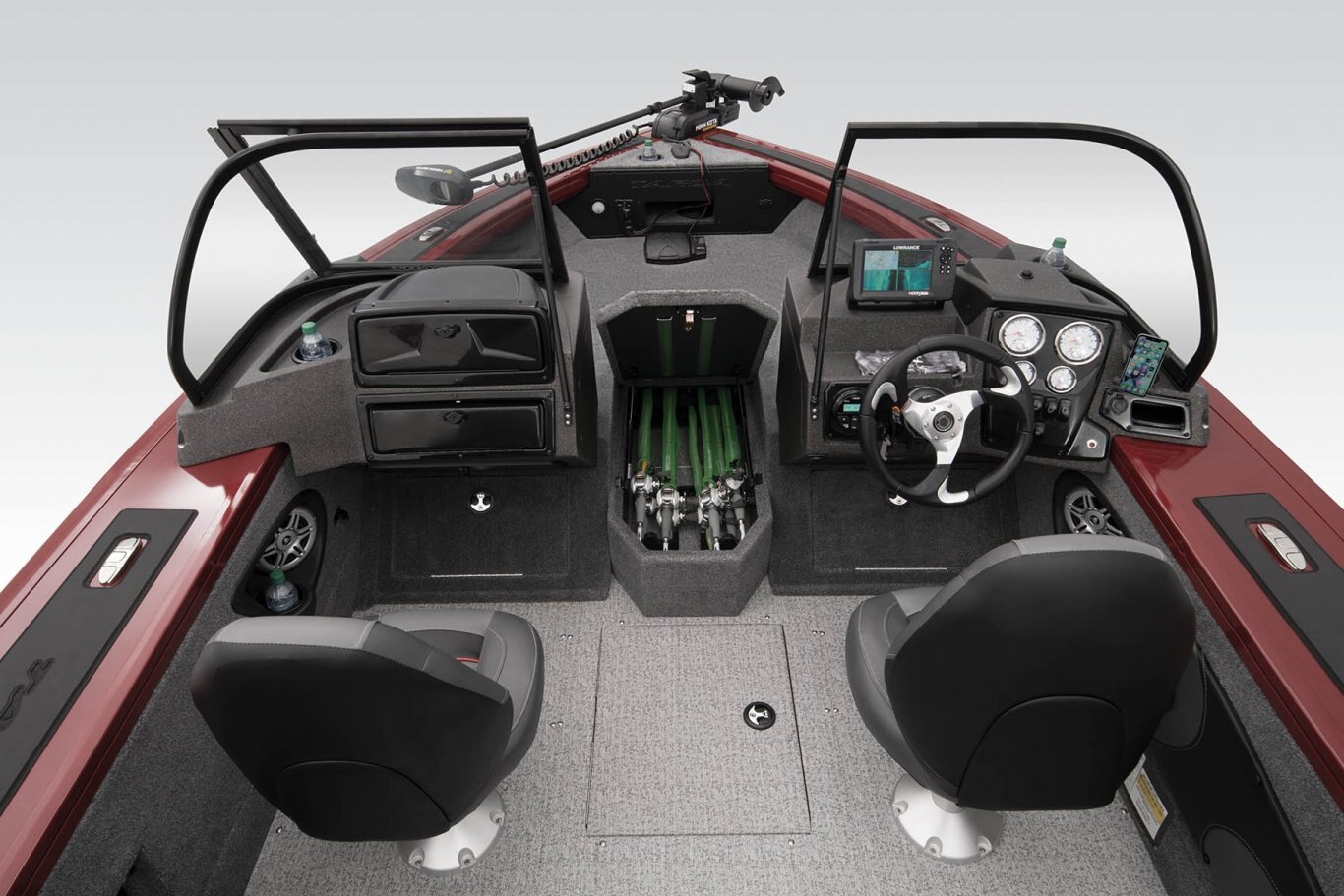 - Bow center lockable rod box w/organizer for spinning & baitcast rods to 7' 6" (2.29 m)