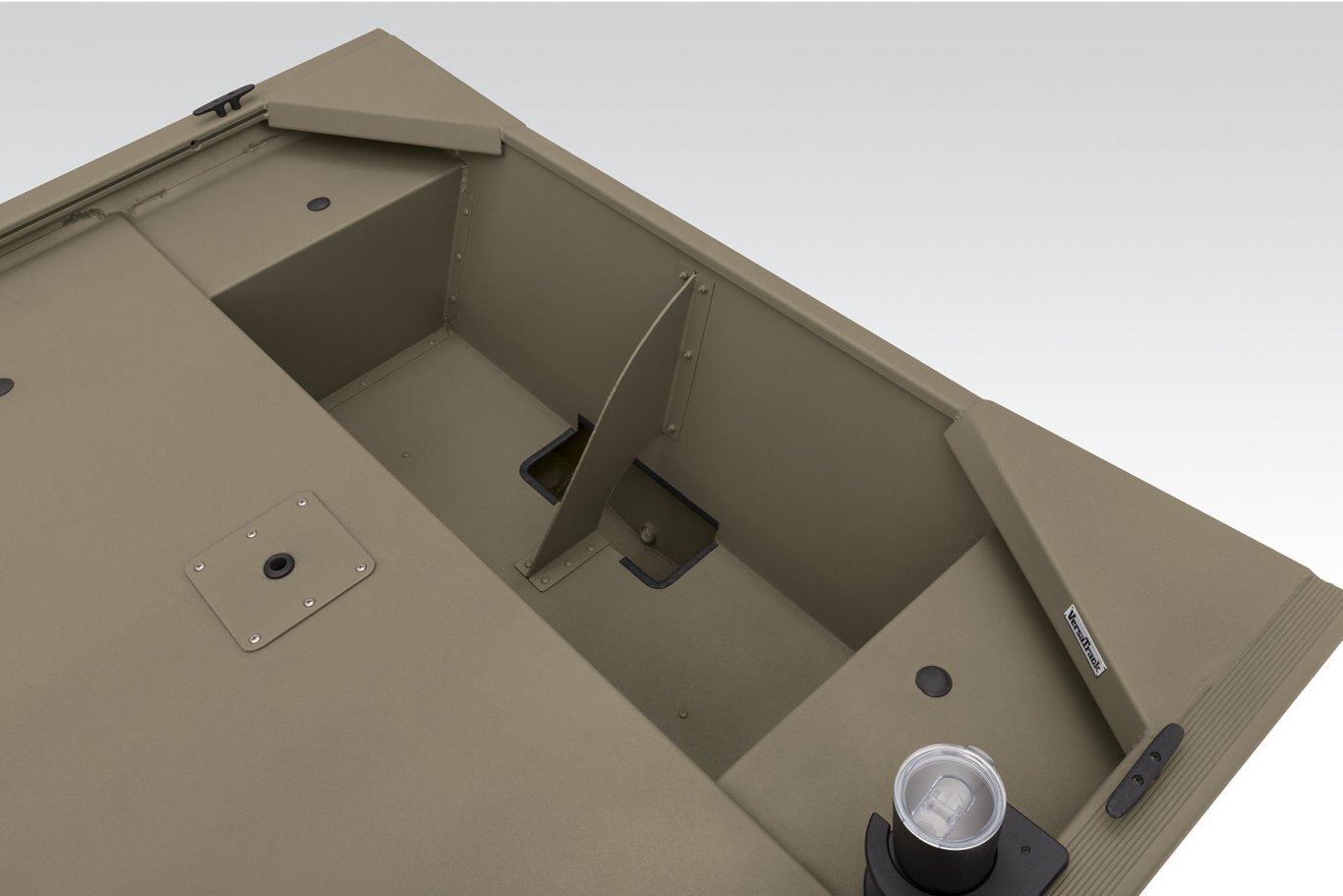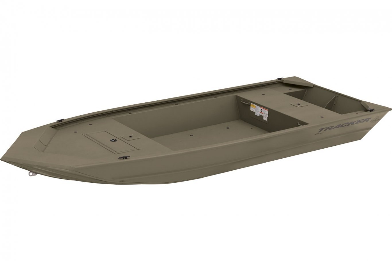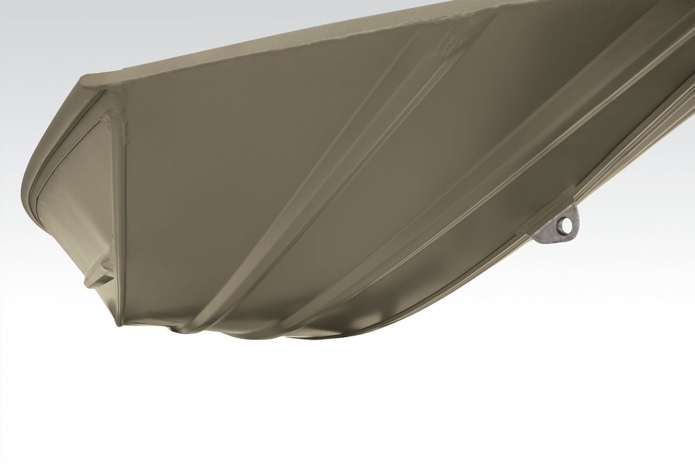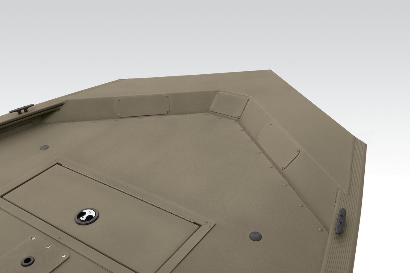 Color: Forest Green Available in optional Grassland or Woodland camo patterns (at additional cost) Industry-exclusive, baked-on powdercoat finish w/Sure Tread™ for long-lasting durability, color & good looks 100% aluminum, wood-free construction Thick .190 aluminum floor for added rigidity & a quieter ride 7° deadrise for a smoother, drier ride Welded-in, foam-filled interior side walls for quieter ride & structural strength Heavy-duty 1-piece, extruded aluminum gunnels for structural strength & rigidity Extruded bow chines for a stronger hull 2-piece, .100 5052 marine grade aluminum hull All-aluminum box-beam transom w/corner braces—welded in to unitize & strengthen the hull Welded-in longitudinal stringer system for full-length support along the running surface Pressed-in strakes for structural strength & tracking stability Welded, drained rain channels for drier storage in bow compartment(s)