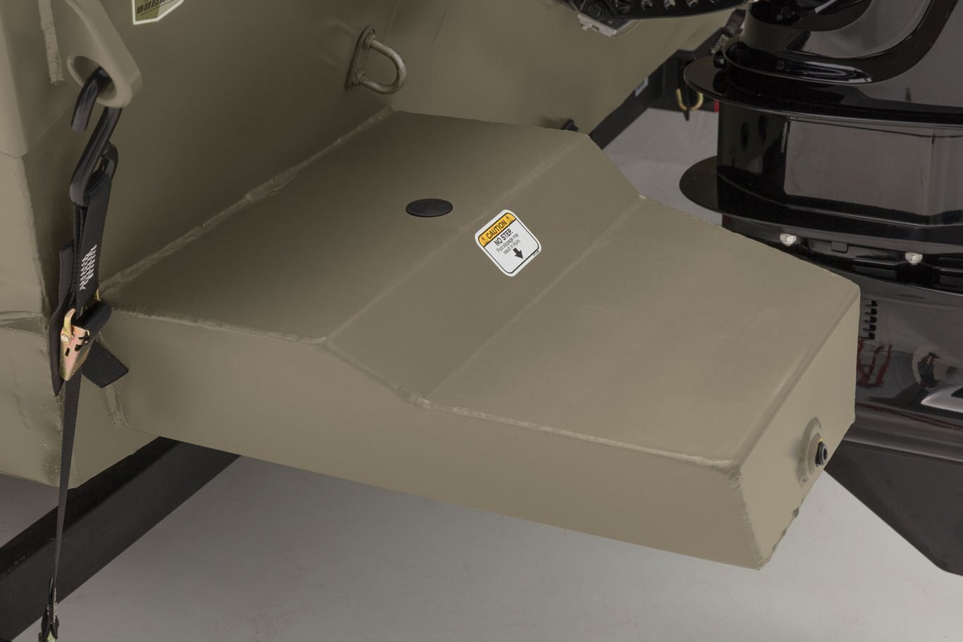 Color: Forest Green Available in optional Grassland or Woodland camo patterns (at additional cost) Industry-exclusive, baked-on powdercoat finish w/Sure Tread™ for long-lasting durability, color & good looks 100% aluminum, wood-free construction Thick .190 aluminum floor for added rigidity & a quieter ride 7° deadrise for a smoother, drier ride Welded-in, foam-filled interior side walls for quieter ride & structural strength Integrated sponsons at the stern—for quicker planing & better shallow-water performance Heavy-duty 1-piece, extruded aluminum gunnels for structural strength & rigidity Extruded bow chines for a stronger hull .100 5052 marine grade aluminum hull All-aluminum box-beam transom w/corner braces—welded in to unitize & strengthen the hull Transom motor-mounting plate for increased strength & durability Welded-in longitudinal stringer system for full-length support along the running surface Pressed-in strakes for structural strength & tracking stability Welded, drained rain channels for drier storage in bow compartment(s)
