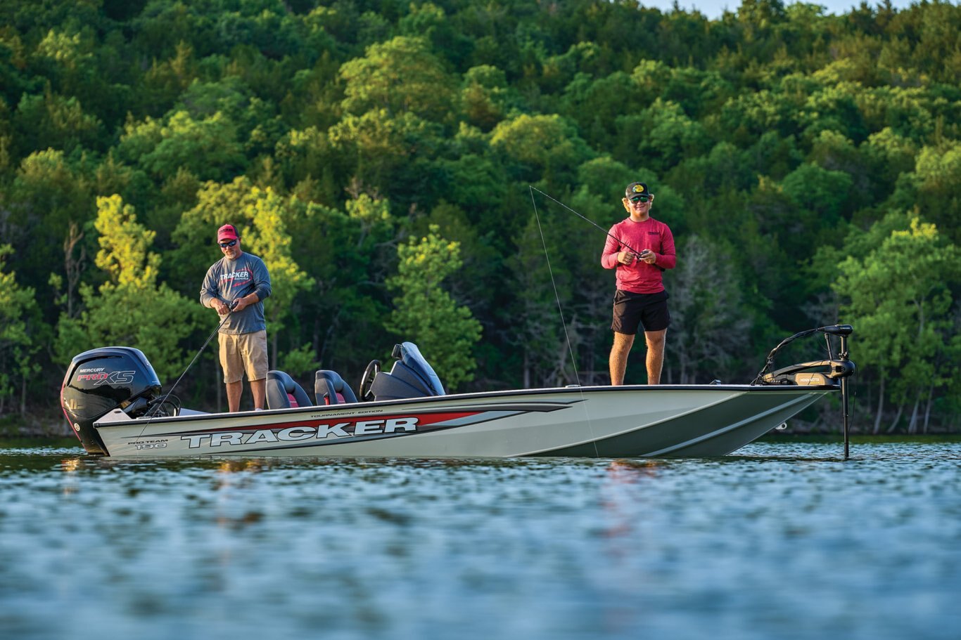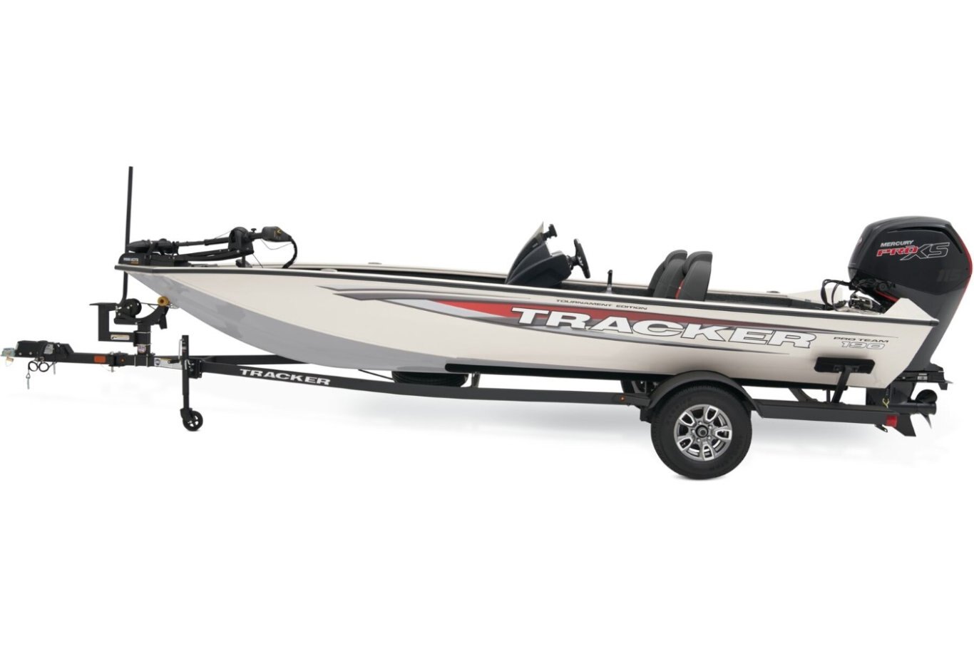 Tournament Edition package: bow Lowrance® HOOK Reveal 5 swivel color fishfinder + GPS w/CHIRP & SplitShot™ transducer; console Lowrance® HOOK Reveal 5 swivel color fishfinder + GPS w/CHIRP & TripleShot™ transducer; Minn Kota® Maxxum® 24V, 70-lb. (31.75 kg) thrust, 52" (1.32 m) shaft, foot-control trolling motor w/rotomolded foot pedal tray; soft touch tournament steering wheel; 24V trolling motor harness & receptacle; 3-bank battery charger & 3 battery trays; 1 additional trolling battery; upgraded trailer w/custom aluminum wheels, full-size matching spare, 13" (33.02 cm) radial tires & bow boarding steps/safety handle