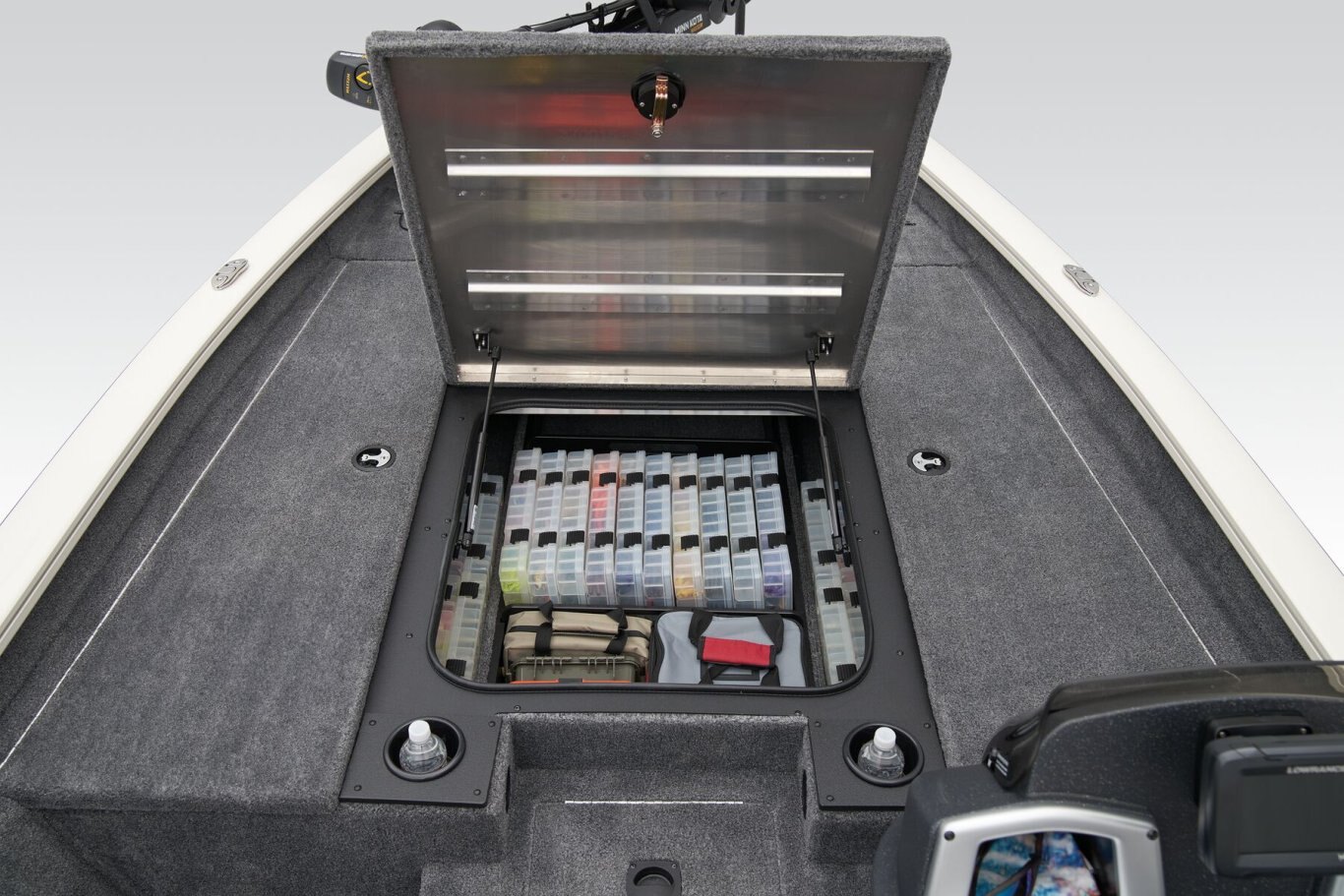 • 4 drink holders—2 on bow deck, 2 in bow tackle storage