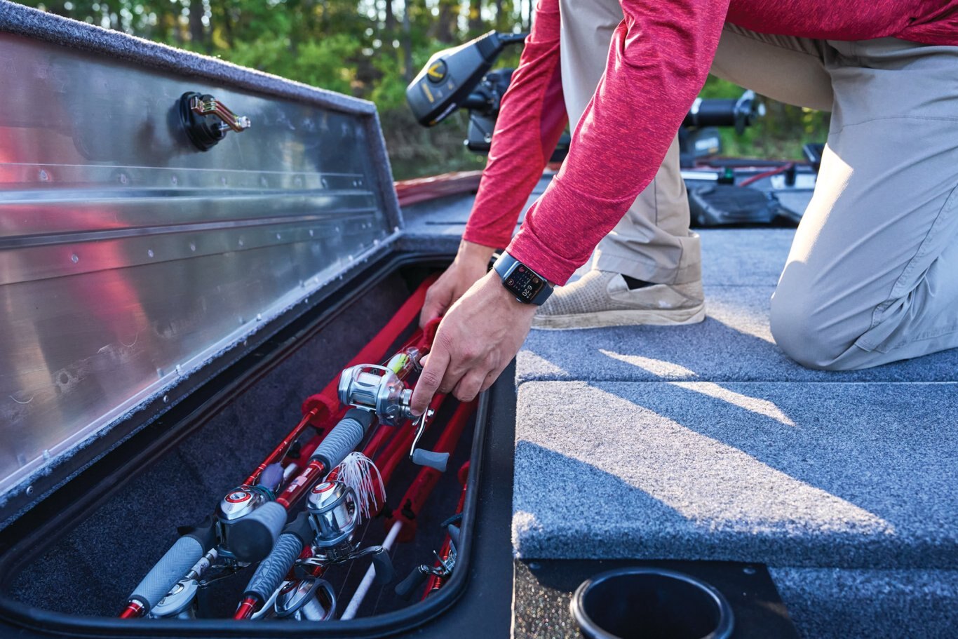 - Bow port & starboard rod storage w/large lids & rod organizers w/tubes—24 total rods up to 9' (2.74 m) casting/8' (2.44 m) spinning