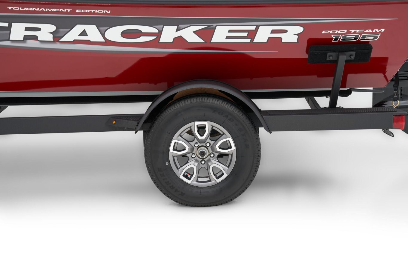 - Upgraded trailer: 14" (35.56 cm) custom aluminum wheels w/radial tires, full-size matching spare & bow boarding steps/safety handle for boarding from trailer