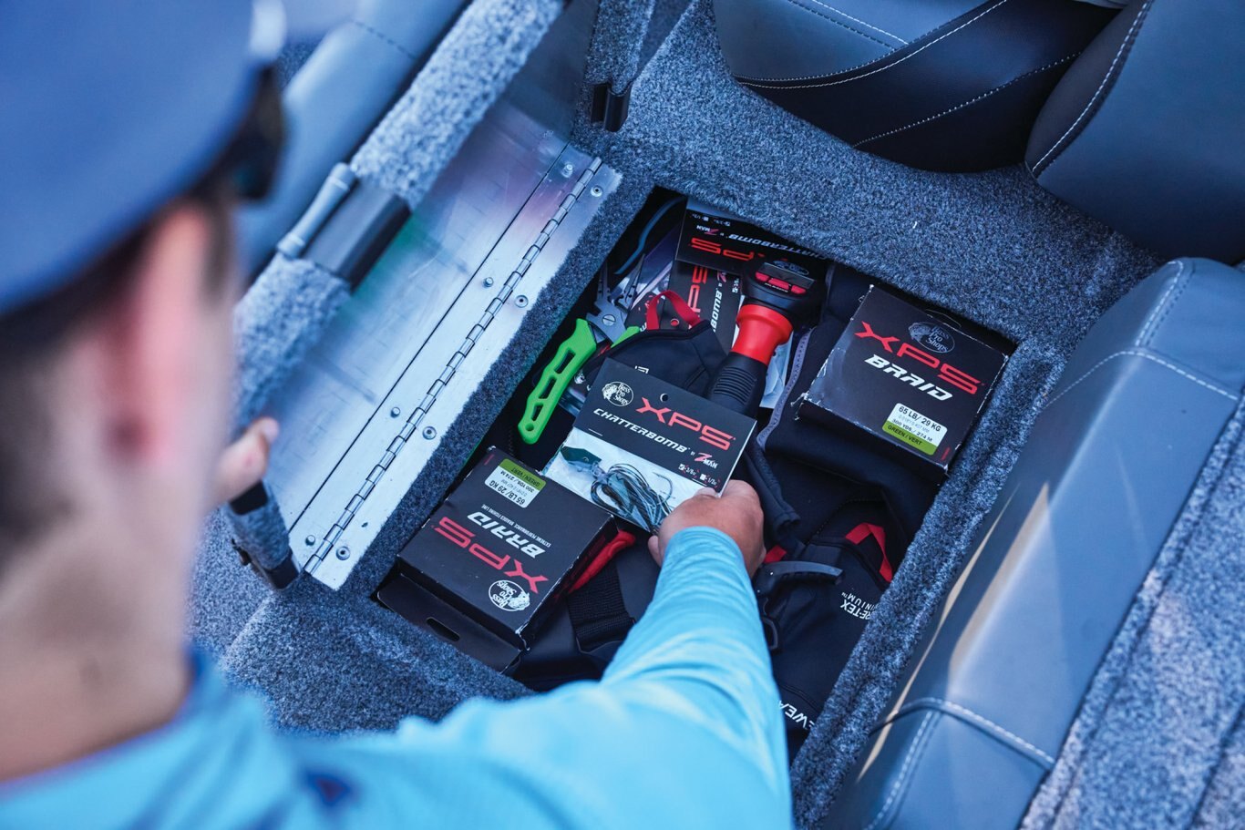 - Aft port & starboard molded storage boxes each hold six 3700 tackle boxes