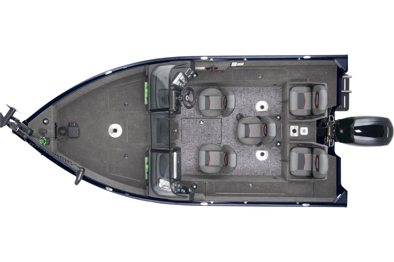 - Bow panel w/trolling motor receptacle, 12V outlet & motor tilt switch