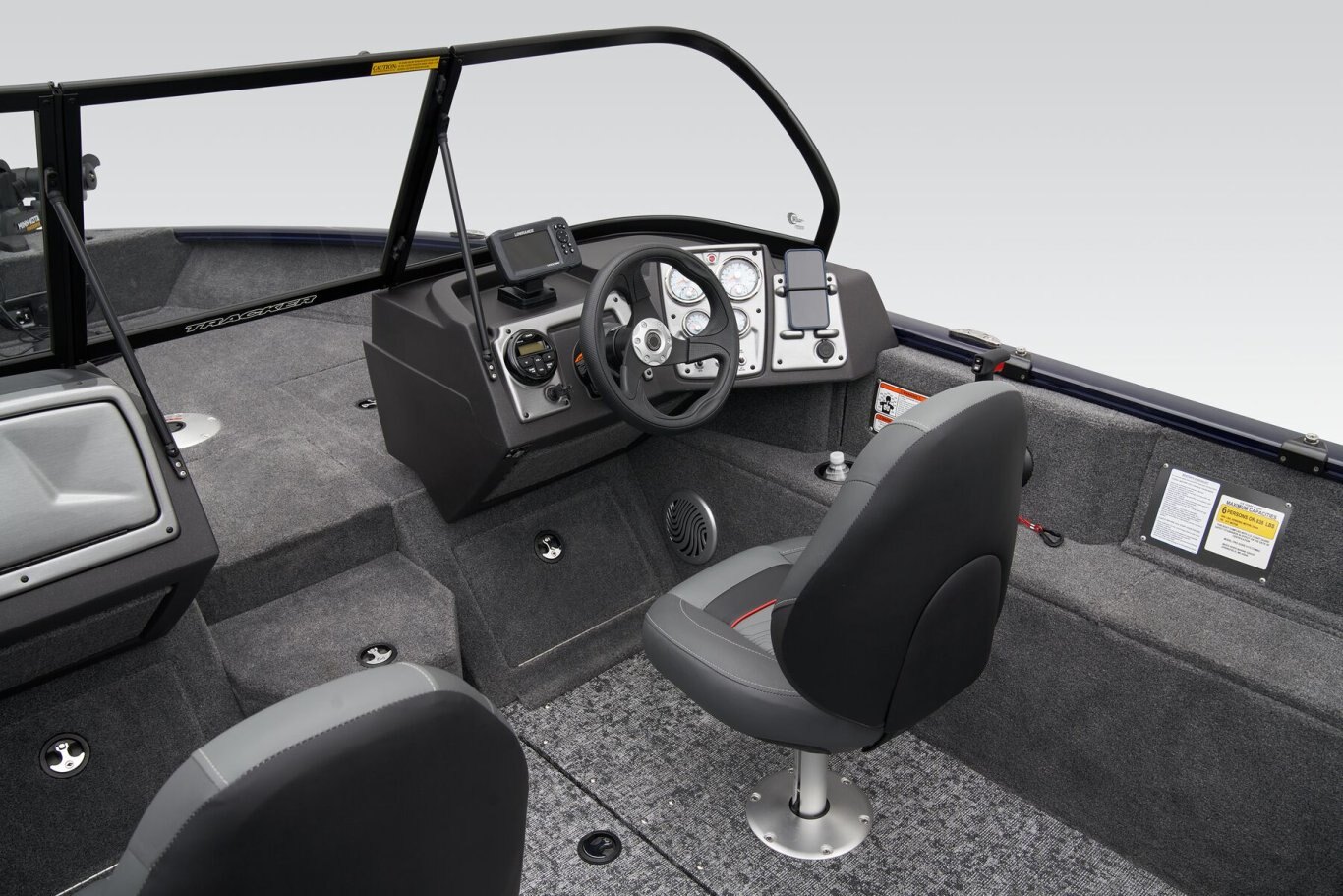- 16-oz. (.45 kg) marine-grade, fishing-friendly carpet on decks & trim