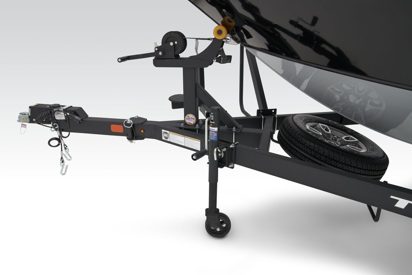 - Heavy-duty winch w/nylon strap & bow safety strap