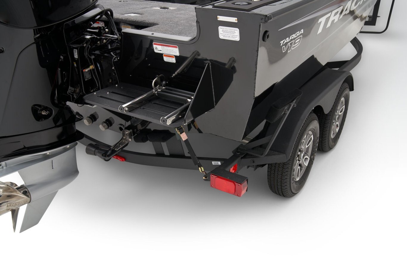 - Outboard motor support to reduce hull & transom stress while towing