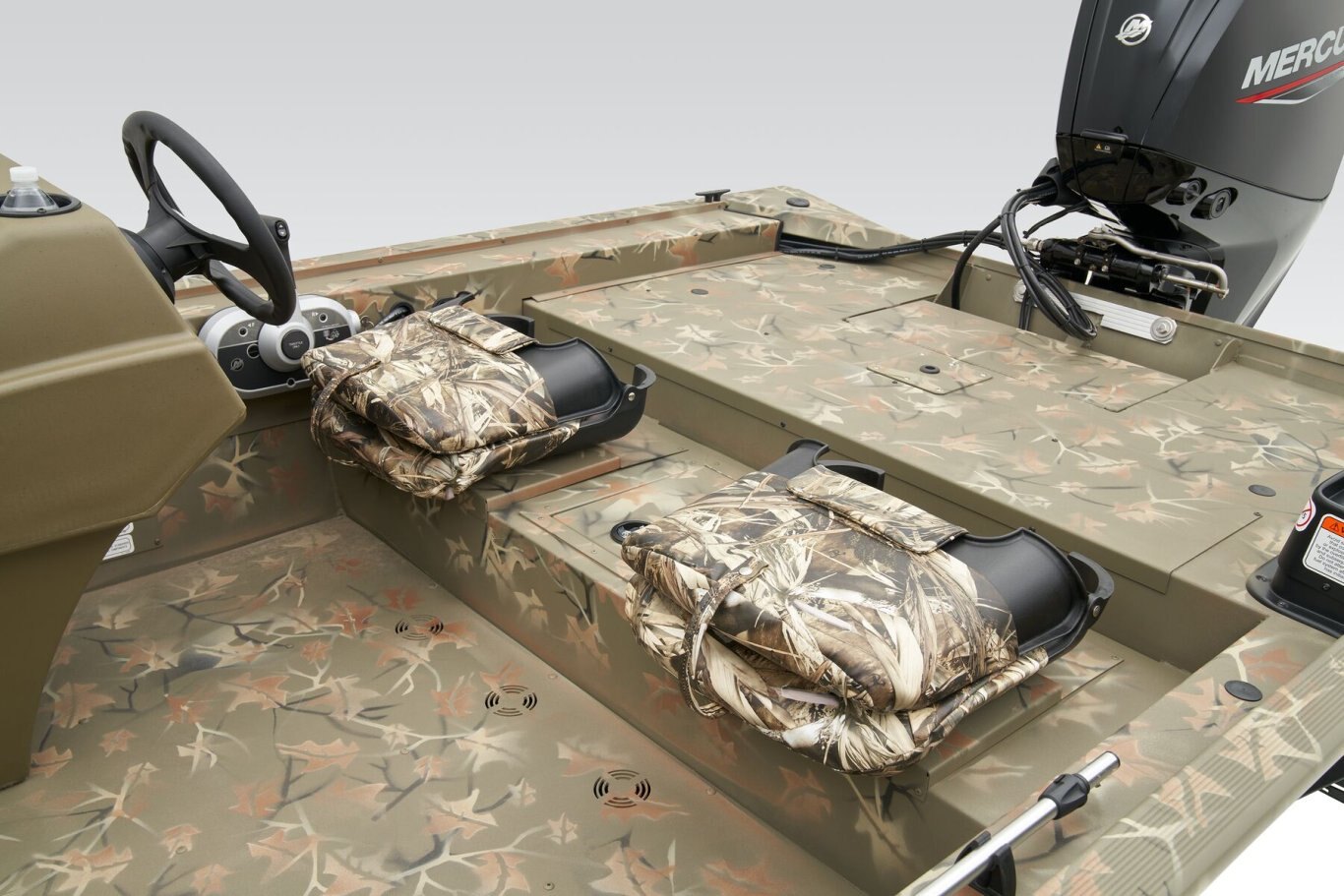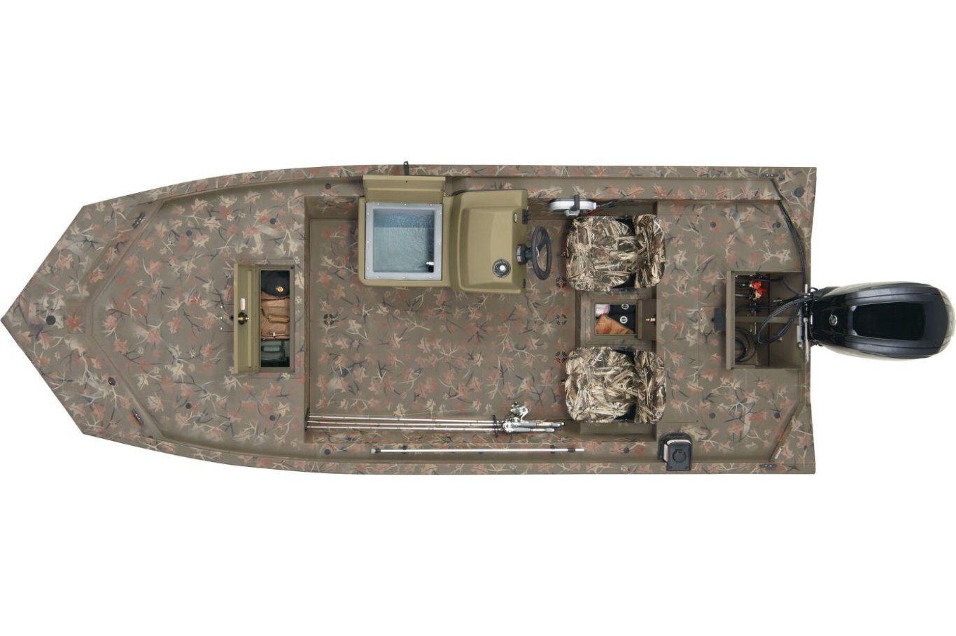 Step aboard the TRACKER® GRIZZLY® 1754 SC, a roomy and steady aluminum jon boat measuring 17' 1" in length and 6' 6" wide, offering ample space for your fishing or recreational outings. Capable of accommodating up to a 75HP motor, this versatile boat is equipped with a lockable bow deck storage compartment, ensuring that your gear stays secure and organized during your adventures on the water. The 1754 SC features a 7° deadrise hull design, providing a smooth and dry ride even in choppy waters. With a solid .190 aluminum floor and welded-in, foam-filled sides, this boat offers increased structural integrity and reduced hull noise, enhancing your overall boating experience. The fully welded hull, unitized to the all-aluminum box-beam transom via the full-length longitudinal stringer system, ensures exceptional durability and reliability in various water conditions. Backed by the TRACKER PROMISE, the GRIZZLY 1754 SC offers the best factory warranty in aluminum boats, providing you with the assurance and confidence to enjoy your time on the water worry-free. Experience the power, versatility, and dependability of the TRACKER GRIZZLY 1754 SC, your ideal companion for exciting and memorable boating experiences.