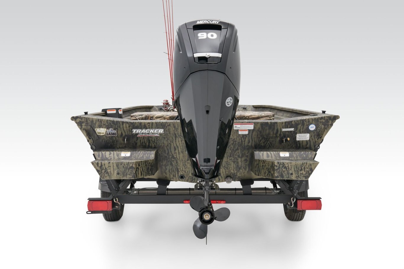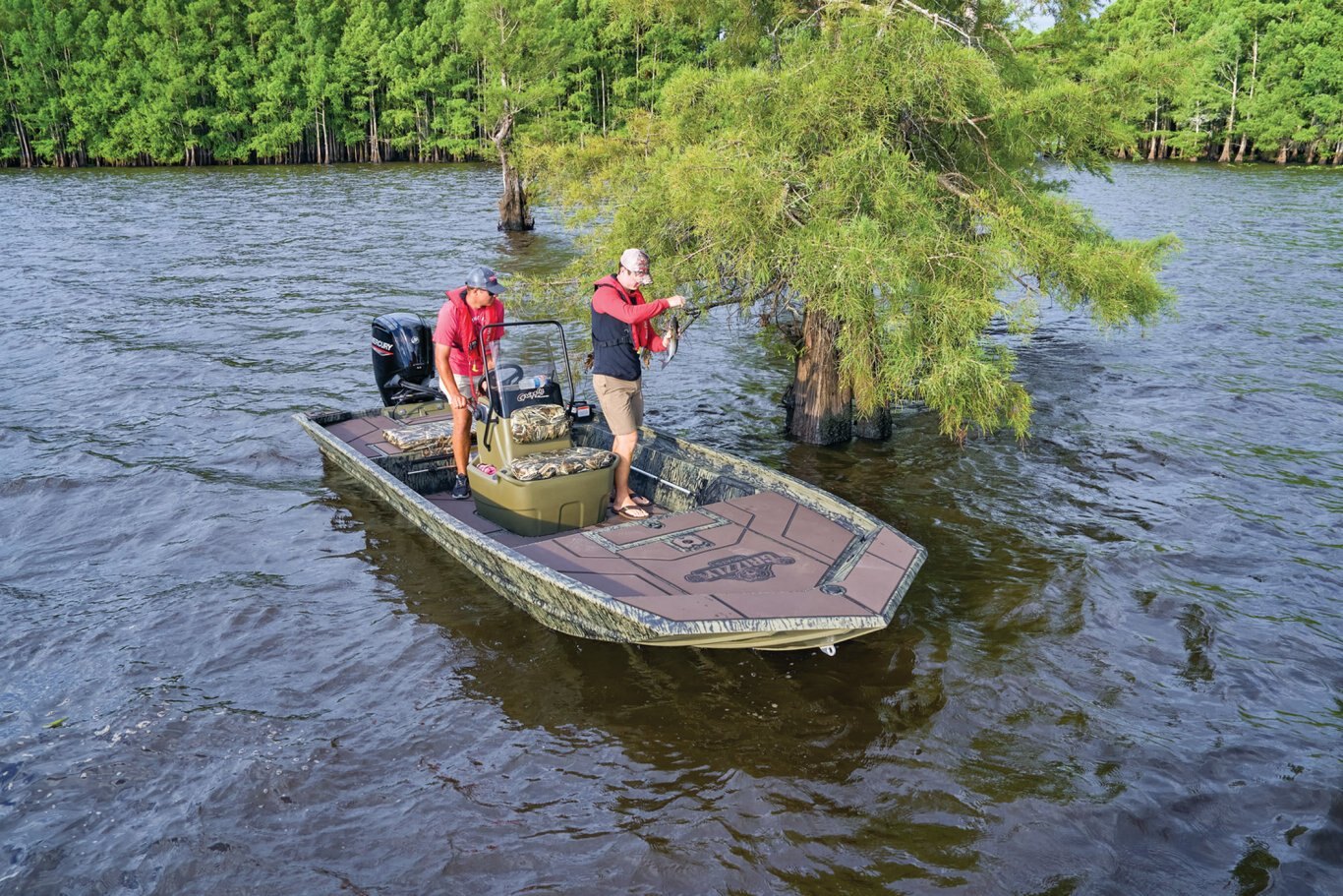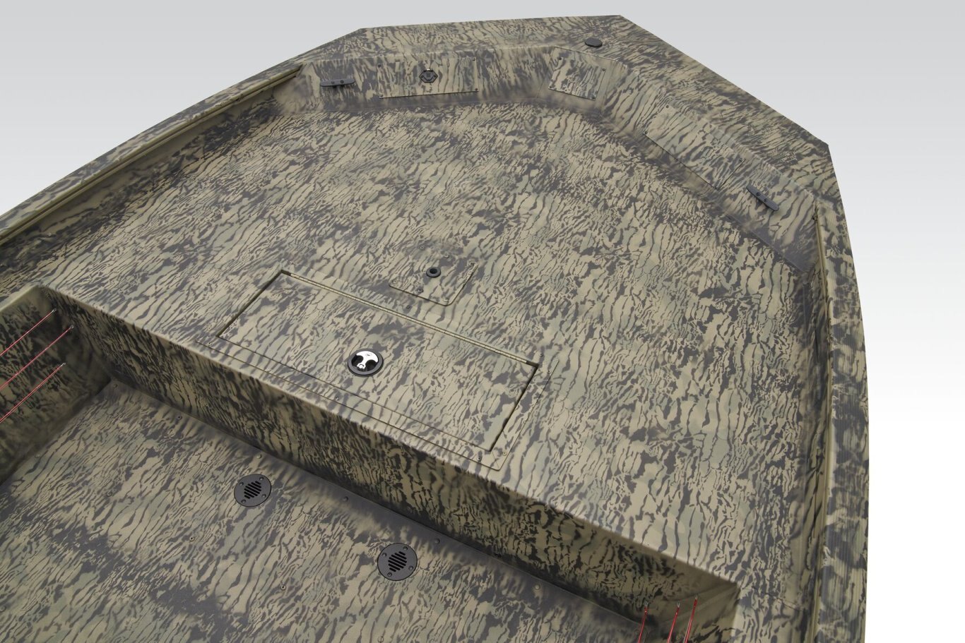 Venture into the unknown with the TRACKER® GRIZZLY® 1860 CC, a robust and versatile all-purpose jon boat designed to conquer various water environments, from rivers to lakes to bays. With its durable, all-welded construction, this boat is equipped to handle any adventure you throw its way. The innovative center-console design not only provides 360° fishability but also offers enhanced visibility for the driver, crucial for navigating through shallow waters cluttered with stumps and rocks. Whether you're casting a line or cruising the waters, the decks and floors of the 1860 CC are equipped with our textured SURE TREAD™ coating, ensuring a secure and non-skid surface for your safety and comfort. The unitized stringer, transom, and Mod V hull construction of this boat guarantee a solid and stable ride, delivering an experience that is both smooth and dry. Finished with our exclusive Forest Green powder-coat finish, the GRIZZLY 1860 CC not only looks sleek but also offers superior protection against corrosion and wear. For those looking to personalize their vessel further, optional TrueTimber patterns and a Marine Mat kit are available, allowing you to tailor your boat to your preferences and style. With the added assurance of the TRACKER PROMISE, featuring the best factory warranty in aluminum boats, the GRIZZLY 1860 CC is a reliable and dependable choice for all your boating adventures.