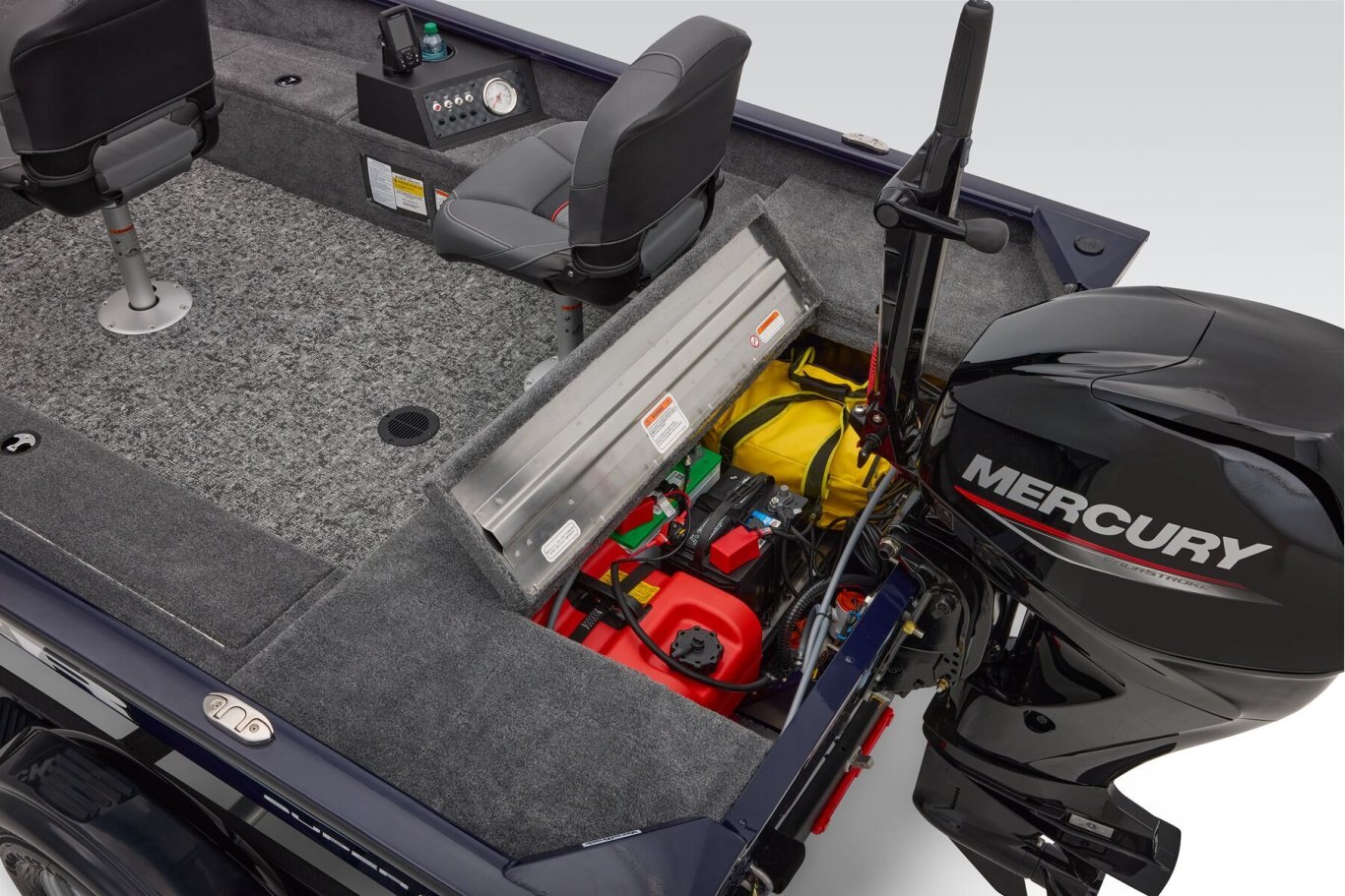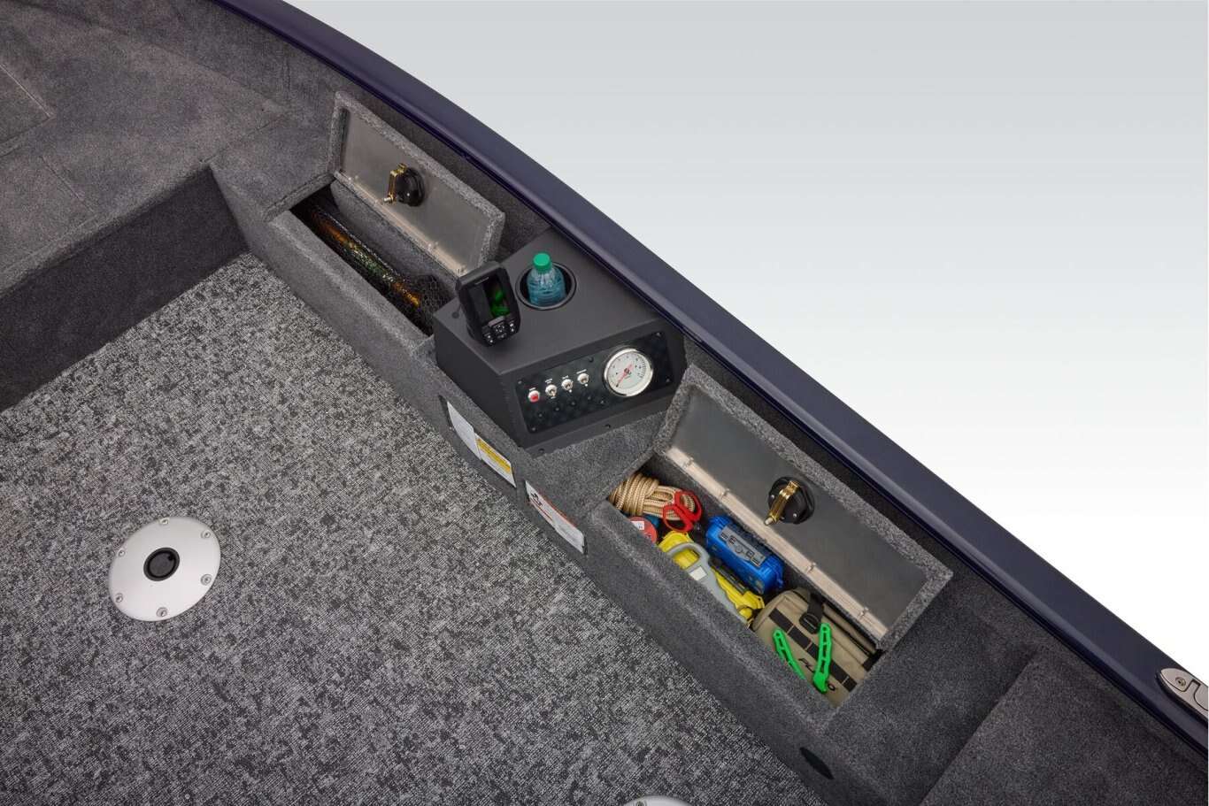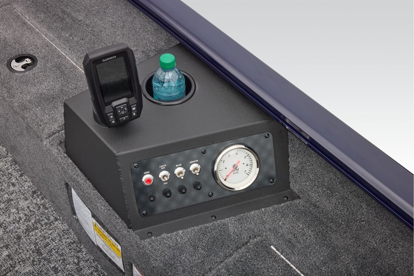 • Fuse-protected control center w/horn, navigation lights, bilge, aerator, 12V outlet & tachometer
