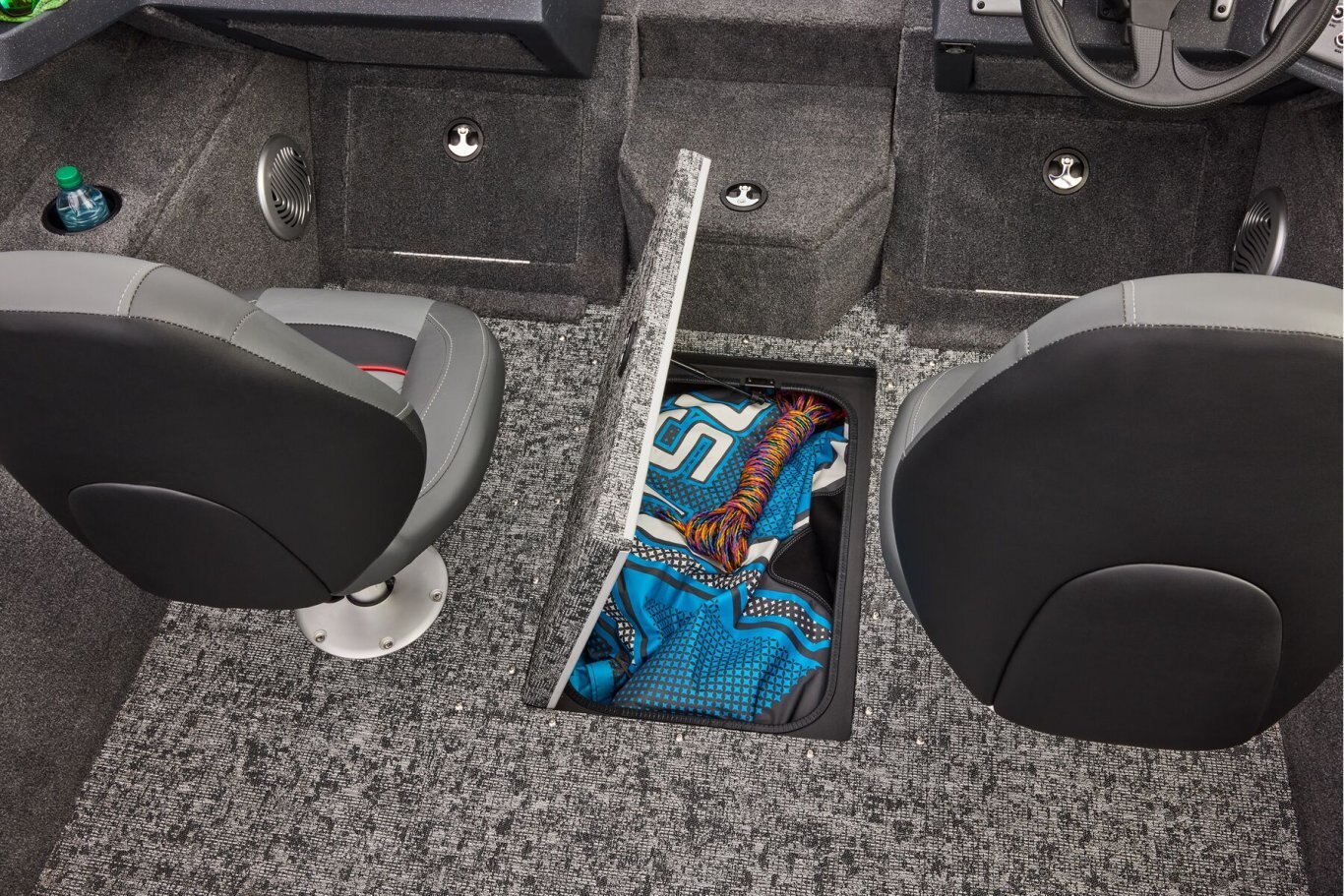 • Molded bow storage box/cooler w/raised lip for drier storage