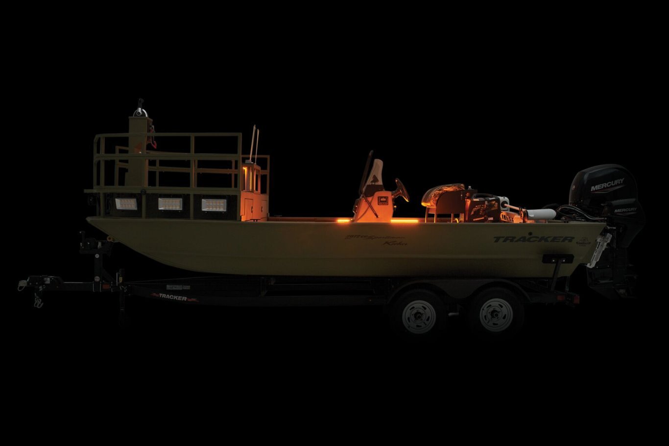 - Eight 160W Outrigger Outdoors® Swamp Eye® HD bowfishing lights gradually adjust an improved output of 24,000+ lumens from warm white to cool white to increase visibility in clear or muddy water, w/building block wiring harness & control dial