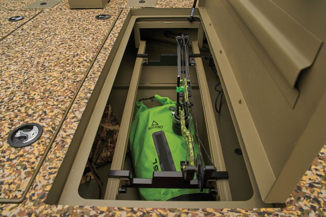 - 2 lighted, port & starboard lockable storage compartments for up to 4 bows in shooting deck