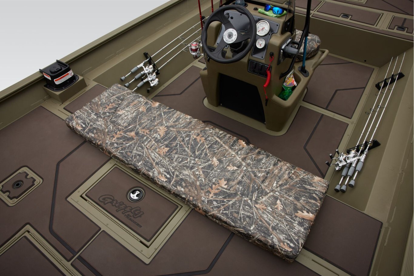• Padded helm cushion ( NEW matching TrueTimber® camo cushion when optional camo boat pattern is chosen)
