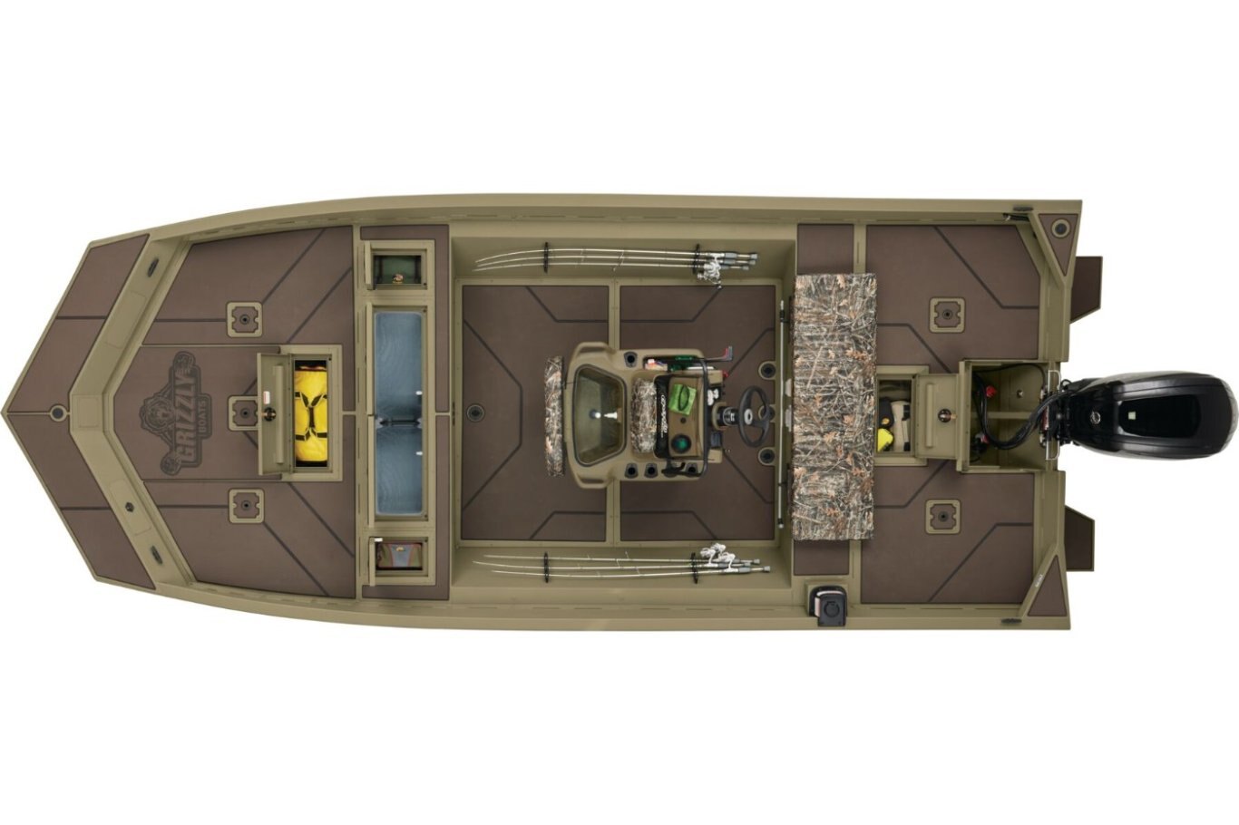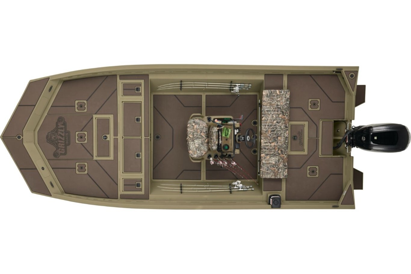 Unleash the power of the TRACKER® GRIZZLY® 2072 CC, a formidable all-welded aluminum jon boat designed to tackle a multitude of tasks, whether it's inland or inshore fishing, hunting, or utility work. Boasting a massive build, this boat is ready to conquer any challenge you throw its way. The innovative center-console design not only offers 360° fishability but also provides the driver with enhanced visibility when navigating through narrow and shallow waters, ensuring a smooth and controlled ride. With the capability to be powered by up to 150 HP, the GRIZZLY 2072 CC delivers unmatched power and range for your adventures on the water. Constructed with 100% aluminum, featuring a .100 hull and .190 floor, this boat guarantees exceptional durability and longevity. The hull, stringer, transom, and decks are meticulously all-welded to create a rock-solid, unitized structure that can withstand the harshest conditions with ease. Backed by the reliable TRACKER PROMISE, offering the best factory warranty in aluminum boats, the GRIZZLY 2072 CC provides you with peace of mind and confidence in your investment. For those looking to personalize their vessel, optional TrueTimber camo patterns and a MarineMat kit are available, allowing you to tailor your boat to suit your preferences and style. Experience unparalleled versatility, power, and durability with the TRACKER GRIZZLY 2072 CC, your ultimate companion for a wide range of water activities.