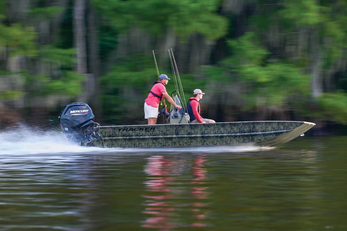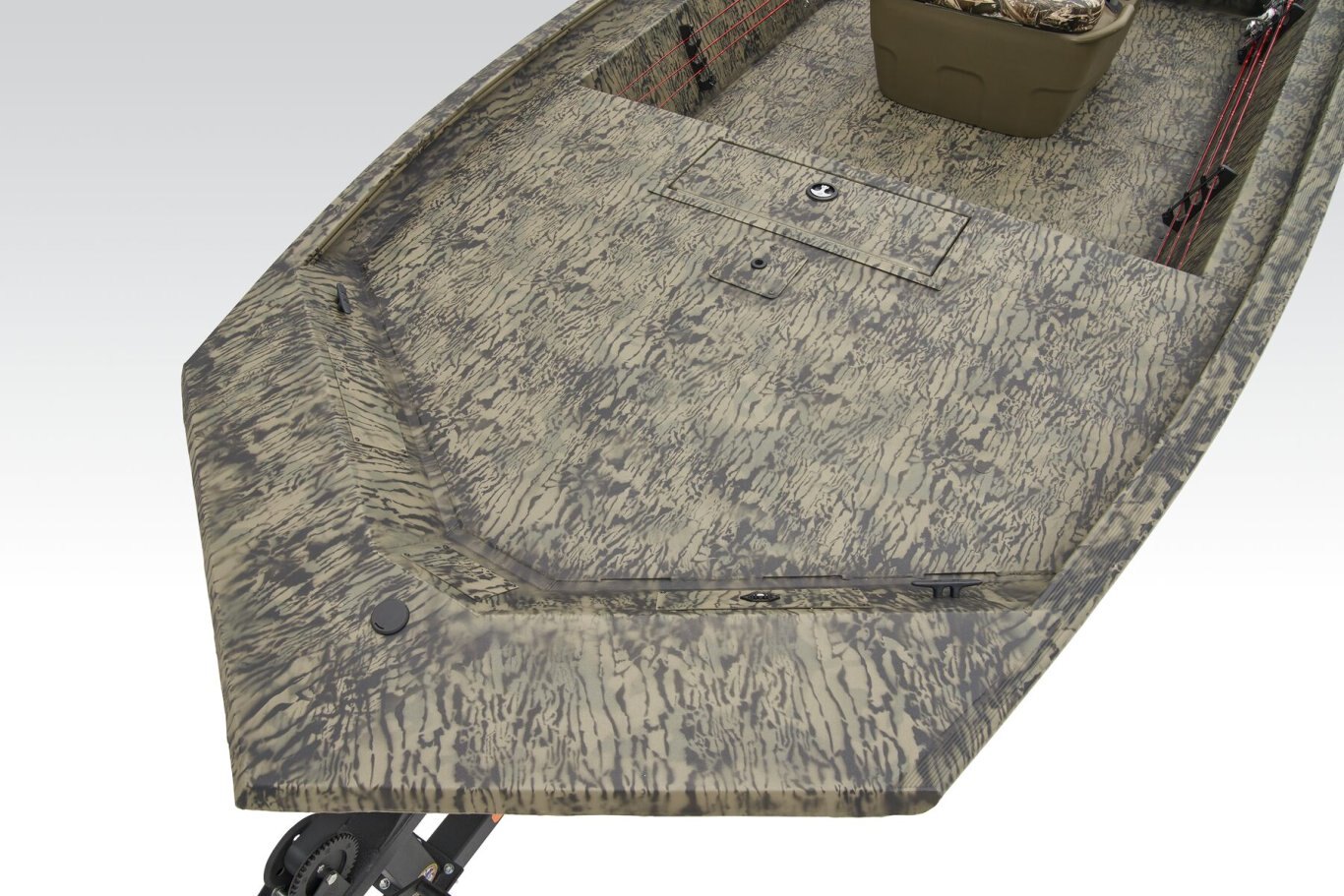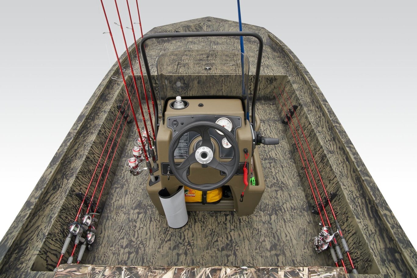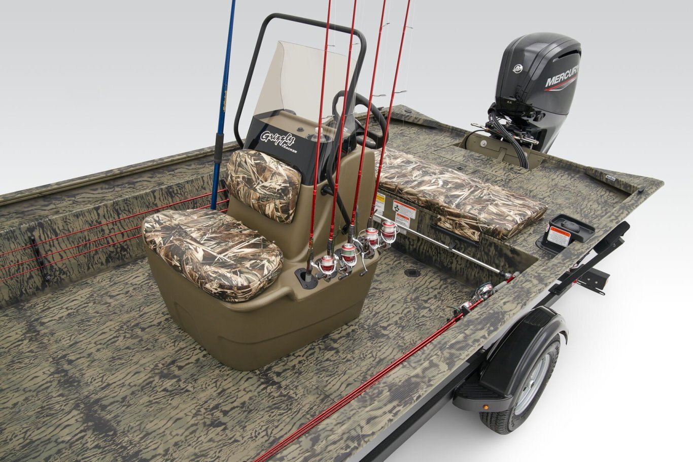 Venture into the unknown with the TRACKER® GRIZZLY® 1860 CC, a robust and versatile all-purpose jon boat designed to conquer various water environments, from rivers to lakes to bays. With its durable, all-welded construction, this boat is equipped to handle any adventure you throw its way. The innovative center-console design not only provides 360° fishability but also offers enhanced visibility for the driver, crucial for navigating through shallow waters cluttered with stumps and rocks. Whether you're casting a line or cruising the waters, the decks and floors of the 1860 CC are equipped with our textured SURE TREAD™ coating, ensuring a secure and non-skid surface for your safety and comfort. The unitized stringer, transom, and Mod V hull construction of this boat guarantee a solid and stable ride, delivering an experience that is both smooth and dry. Finished with our exclusive Forest Green powder-coat finish, the GRIZZLY 1860 CC not only looks sleek but also offers superior protection against corrosion and wear. For those looking to personalize their vessel further, optional TrueTimber patterns and a Marine Mat kit are available, allowing you to tailor your boat to your preferences and style. With the added assurance of the TRACKER PROMISE, featuring the best factory warranty in aluminum boats, the GRIZZLY 1860 CC is a reliable and dependable choice for all your boating adventures.
