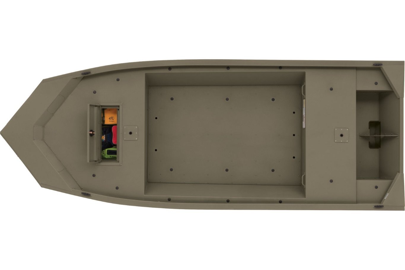 NEW TrueTimber® Woodland camo patterns (at additional cost) Industry-exclusive, baked-on powdercoat finish w/Sure Tread™ for long-lasting durability, color & good looks 100% aluminum, wood-free construction Thick .190 aluminum floor for added rigidity & a quieter ride 7° deadrise for a smoother, drier ride Welded-in, foam-filled interior side walls for quieter ride & structural strength Heavy-duty 1-piece, extruded aluminum gunnels for structural strength & rigidity Extruded bow chines for a stronger hull 2-piece, .100 5052 marine grade aluminum hull All-aluminum box-beam transom w/corner braces—welded in to unitize & strengthen the hull Welded-in longitudinal stringer system for full-length support along the running surface Pressed-in strakes for structural strength & tracking stability Welded, drained rain channels for drier storage in bow compartment(s)