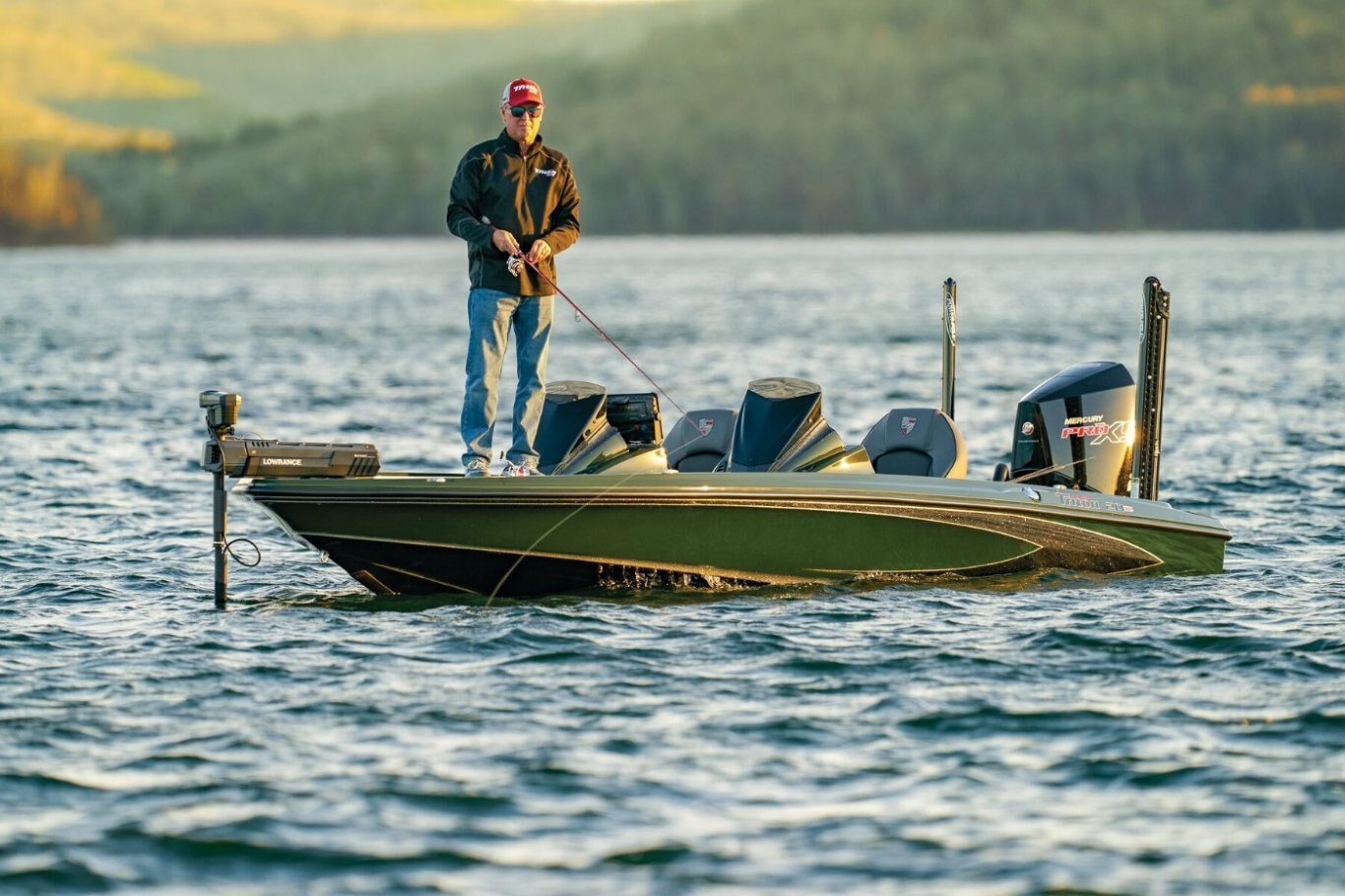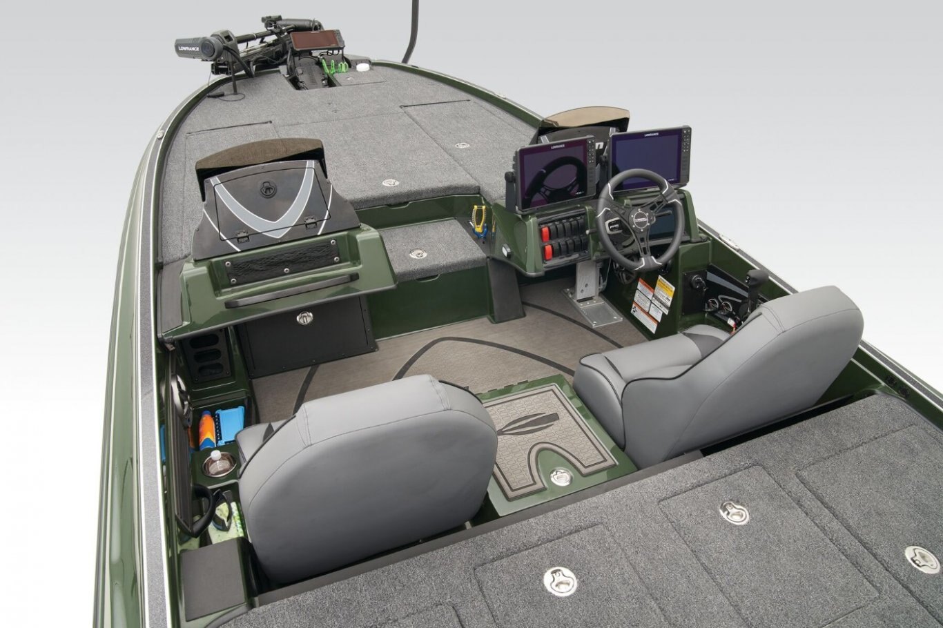 "Stay-Full" Livewell Overflow System 2-800 gph Livewell Aerator Pump with Timer 2-800 gph Livewell Recirculation Pump 2-800 gph Livewell Pumpout Tournament Livewell System with Oxygenators in each Livewell Two Hi-Capacity Rear Insulated Livewells with Divider 1-Bike Seat with Hydraulic Pedestal Seat Pole Centric II™ Pedestal Seat with Mesh Suspension 2-Front Pedestal Locations 3 TH Marine Rod Tamers, 2 Bow 1 Aft Front Deck Tool Holder Bow Trim Switch & Nav Light Switch Built-in Fish Measuring Board with Tool Holder Auto On LED Compartment Lights Stainless Steel Capped Fittings Above Rubrail Oversized Rod Lockers Passenger-Side Rod Ramp Locking Oversized Storage Boxes Built in Port Locker Rod Butt Shelf Livewell Aerator Timer Lowrance® HDS 9 PRO w/ActiveTarget® 2 Live Sonar Transducer at Bow Lowrance® HDS 12 PRO w/ActiveImaging HD™ 3-in-1 Transducer at Console Lowrance® Ghost 47" 36V trolling motor Built in Net Stow Trolling Motor Foot-Control Deck Recess Center Storage Box Tackle Organizing System