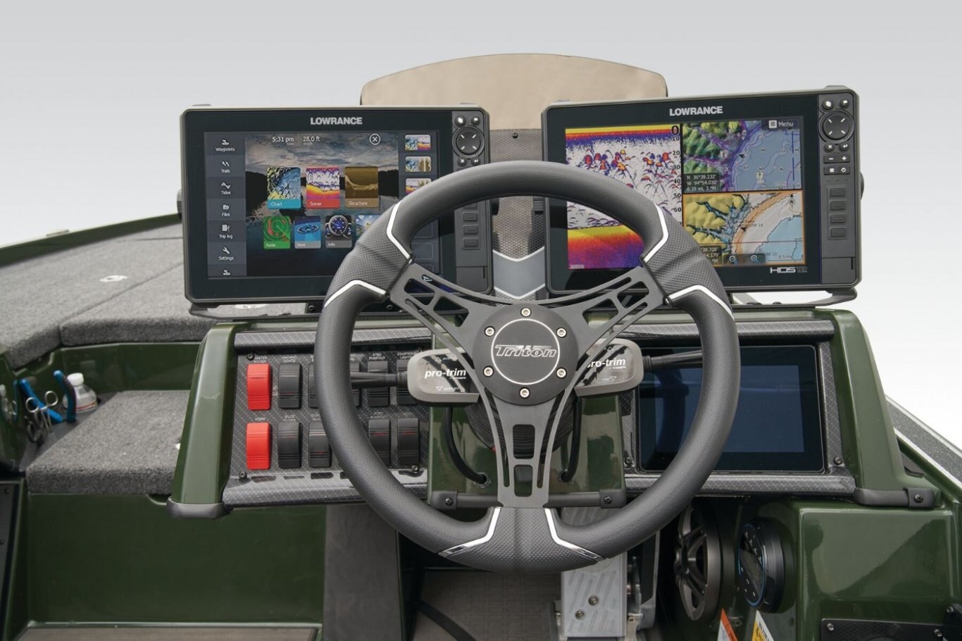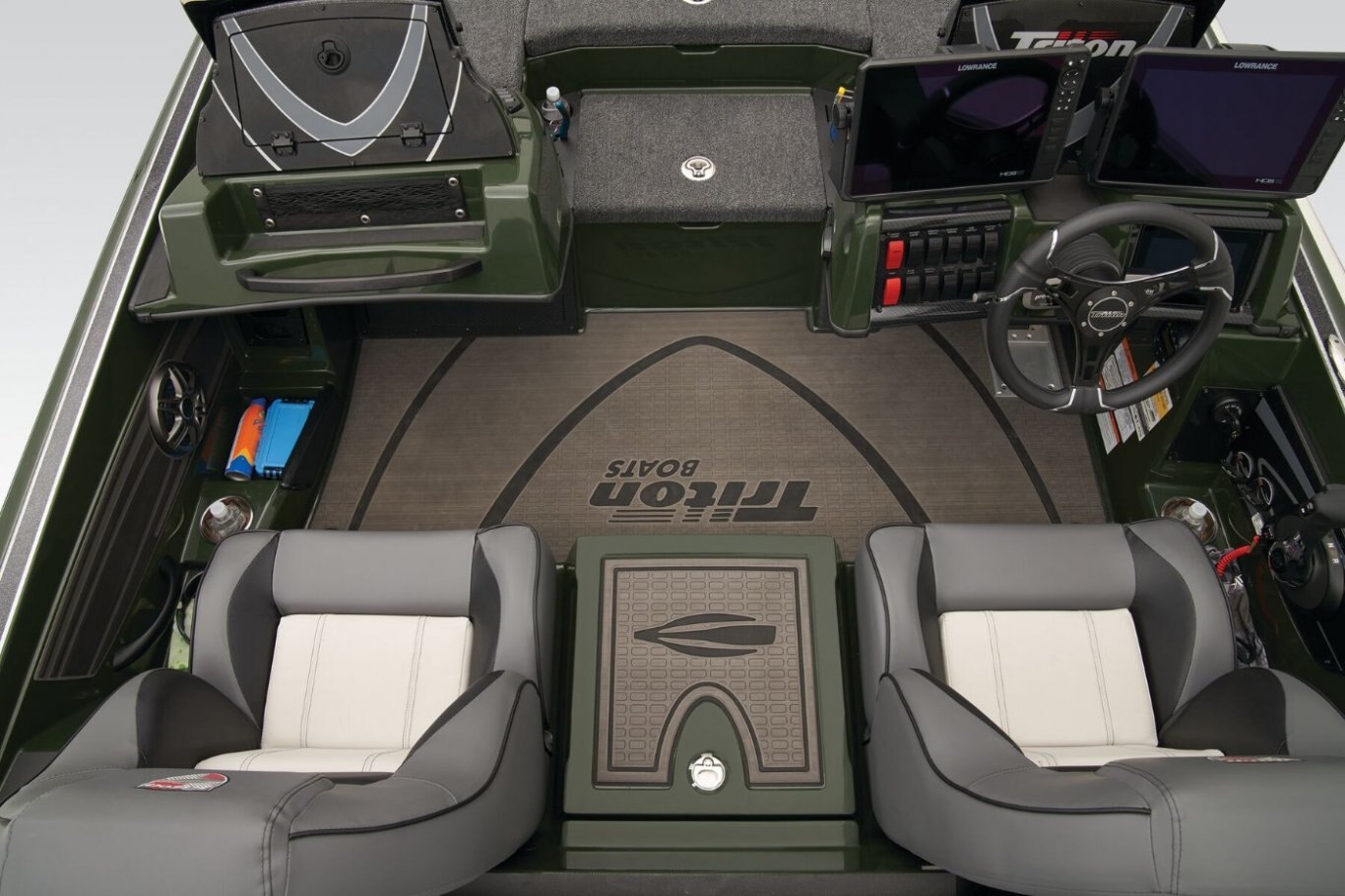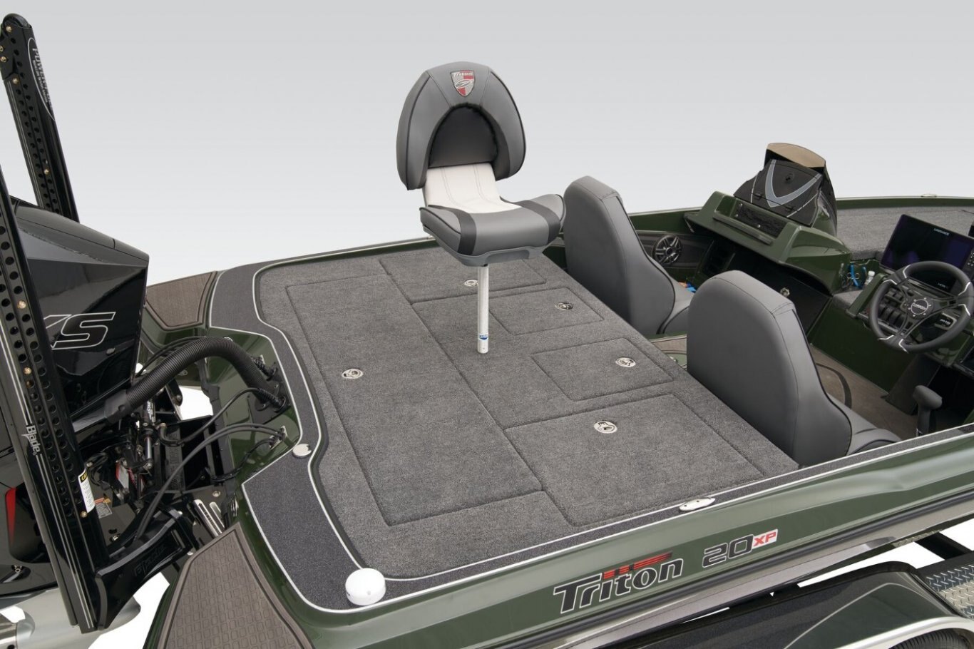 Searing performance is only the beginning of the all-new Triton 20XP Patriot. This next generation Triton brings us back to our roots as a go-fast, fish-catching company that puts performance, quality, and innovation first. A performance-tuned hull delivers an instant hole shot and on-rails handling past 70 MPH. The center of gravity has been moved back 9 inches to get you up and moving in a hurry. Inside, the cockpit features a full roster of innovations including the TriTouch™ touchscreen control unit gives you insight into critical engine functions and performance. An integrated console shelf lets you mount two big screen graphs at the helm, and all-new seating adds plush comfort and support. Lowrance® HDS fishfinders at the bow and dash, a powerful Lowrance® Ghost trolling motor, custom wheels, with legendary Triton construction are just a few of these standard features found on the 20XP Patriot. From first light to last cast, the 20XP Patriot delivers more performance, more capability, and more adrenaline.