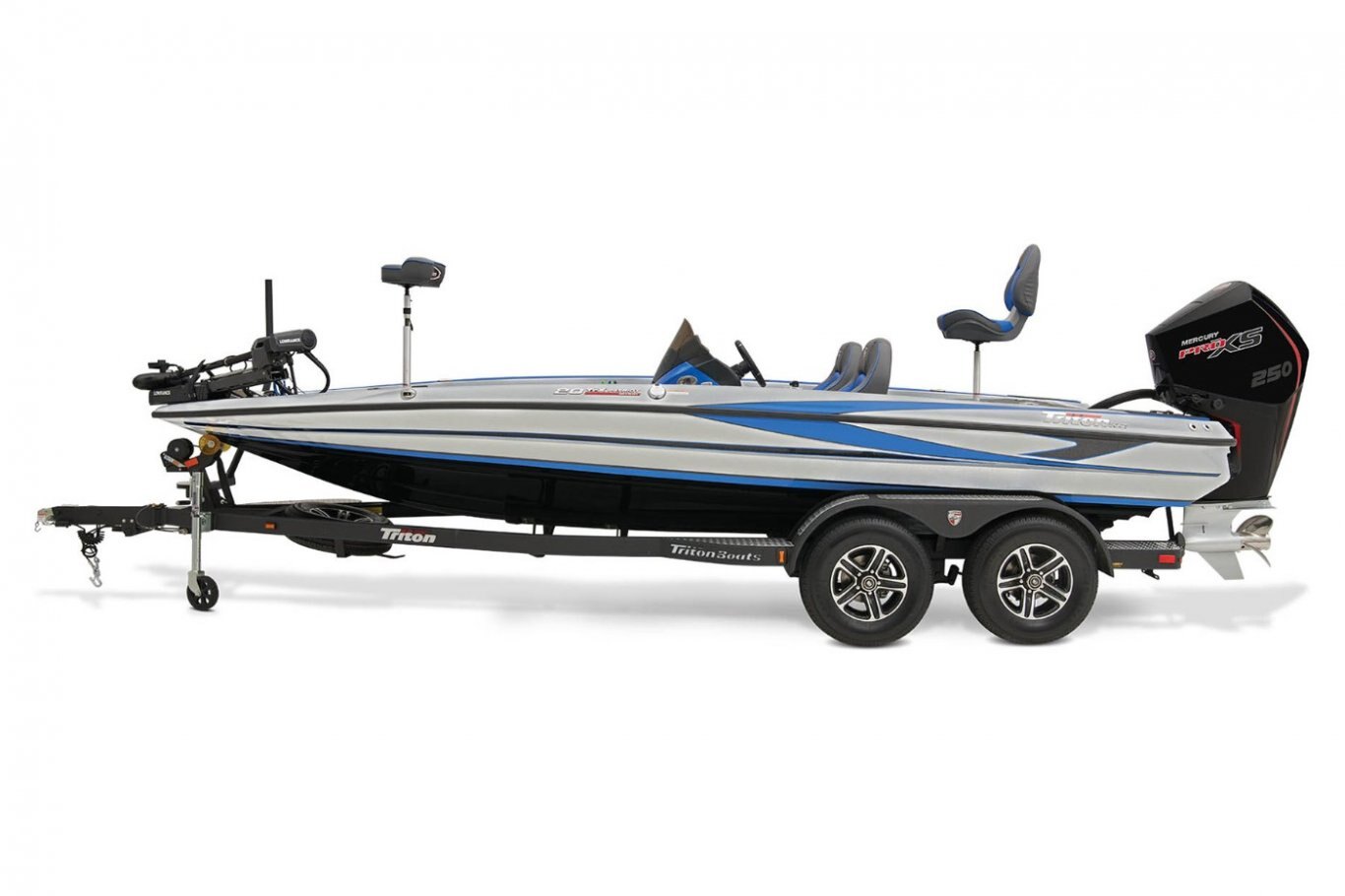 Hit the tournament trail running—fast—in the fully loaded Triton 20 TrX Patriot. This rig delivers impressive performance and unmatched fishability in a 20' package. We did the work for you by hand-picking and installing premium accessories so you can be assured this tournament-ready boat is rigged for optimum fishability and domination. Just a few include a Lowrance® HDS fishfinders at the bow and dash, and a powerful Lowrance® Ghost 36V trolling motor and more. Stand out from the competition in the 20 TrX Patriot.