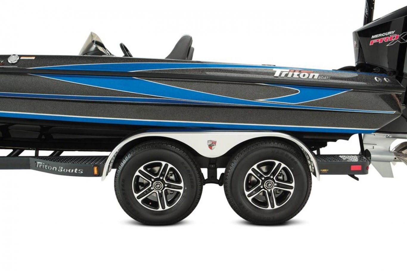 Aluminum Diamond Tread Plate, Front and Rear Step Pads Balanced Radial Tires Custom Aluminum Wheels and Radial Tires Vault® Hubs with 10 Year Limited Warranty Disc Brakes on All Axles Ratchet Trailer TieDowns Seven Pin Trailer Plug Spare Aluminum Wheel and Radial Tire Spare Tire Mount (Underslung) Tandem Axle DLx Deluxe Winch DLx Deluxe Jack Stand TRITON® Lighted Step Pads Channel Steel Frame Swing Tongue LED Trailer Tail, Marker and Reverse Lights Recessed and Waterproof Lighting Road Armor® Protective Finish