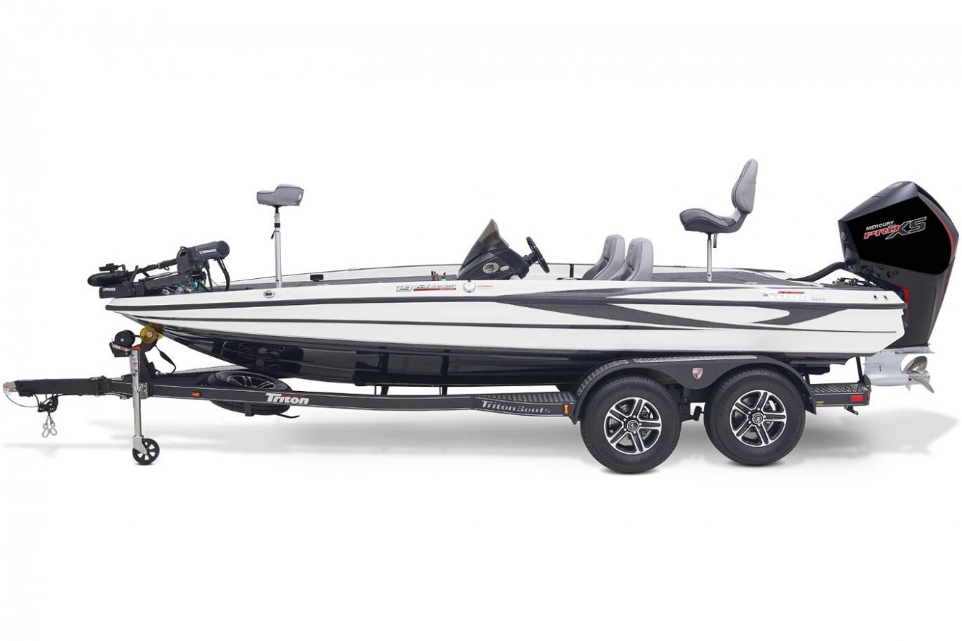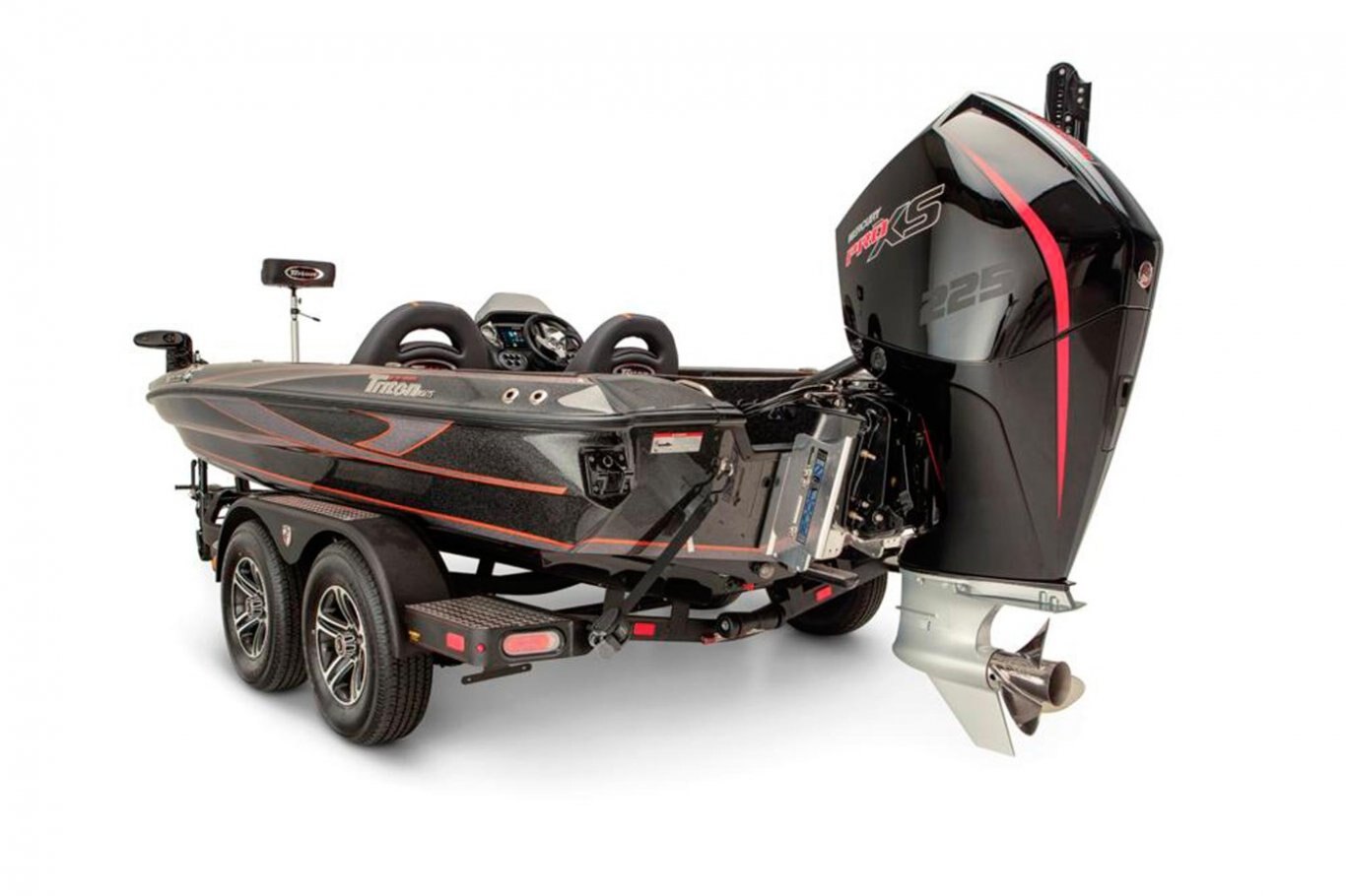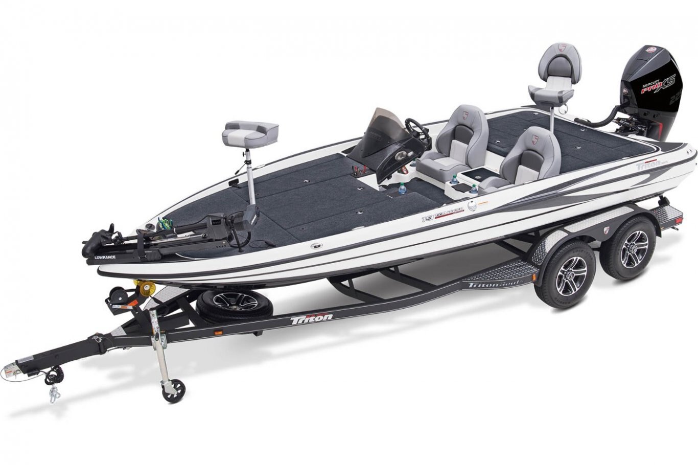The 19 TrX Patriot is loaded with features and high-performance stealth in a value package that is ideal for the hardcore weekend tournament angler. You get big-rig amenities inspired by championship results in a tournament-ready 19' class package. Armed with 225 horses, the 19 TrX Patriot is factory rigged with a Mercury® outboard, Lowrance® electronics, and Lowrance® trolling motor. There is no wasted space in a Triton—an 8' rod rack with 12-rod capacity, center storage box tackle organizing system and oversized storage compartments throughout mean you never leave anything behind. With a custom designed, road-trip ready trailer, the 19 TrX Patriot is ready to roll.