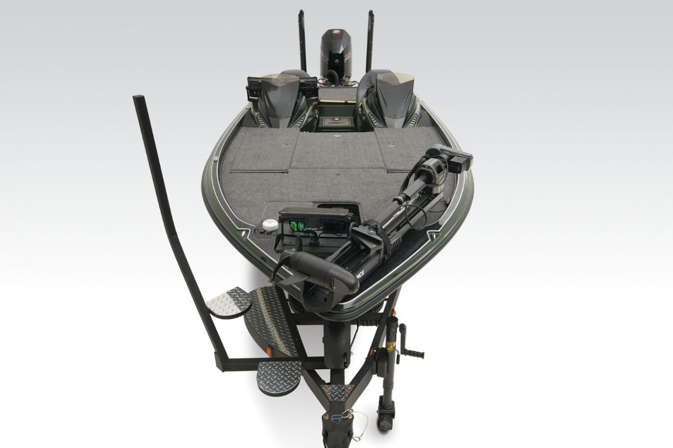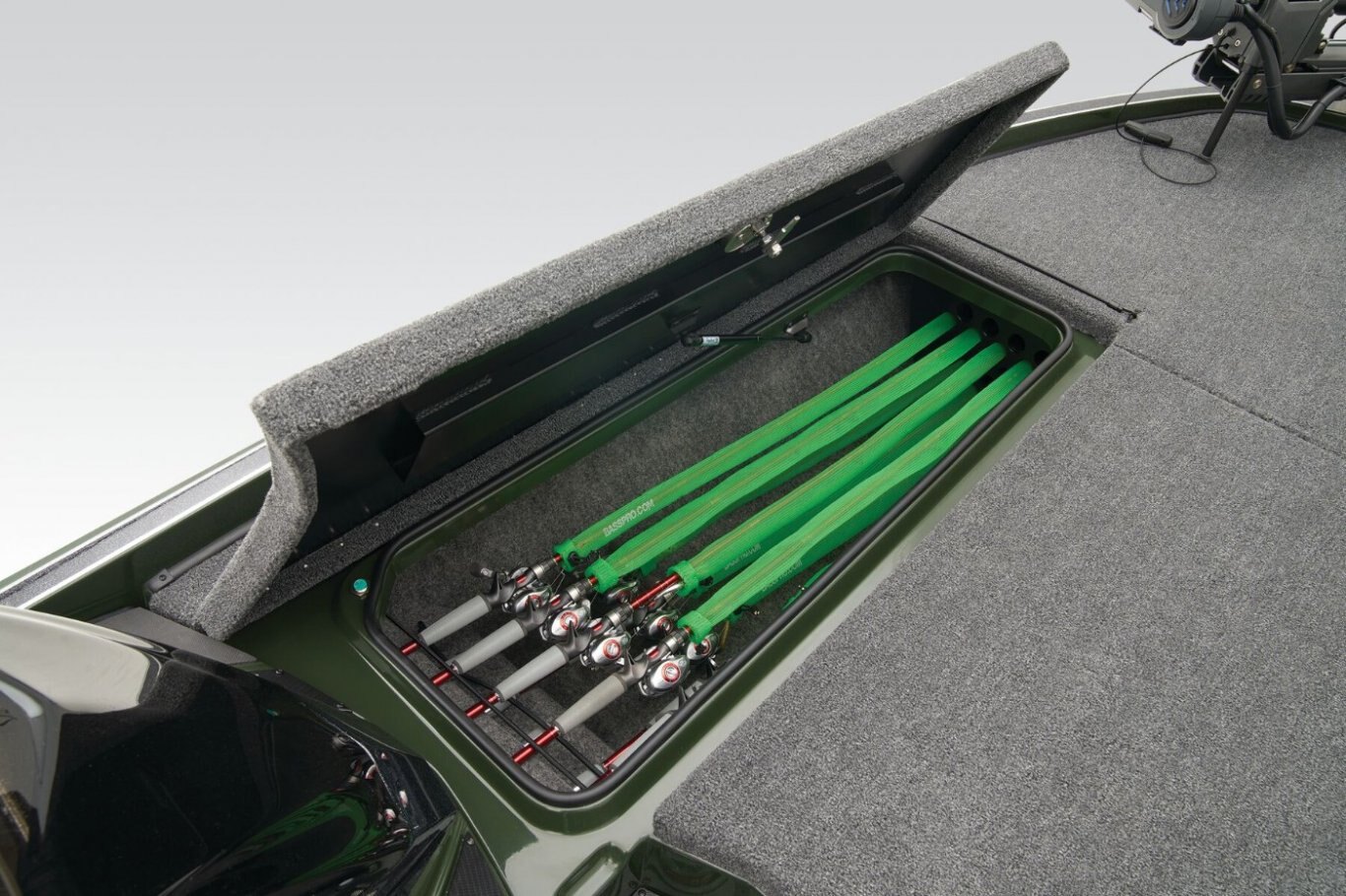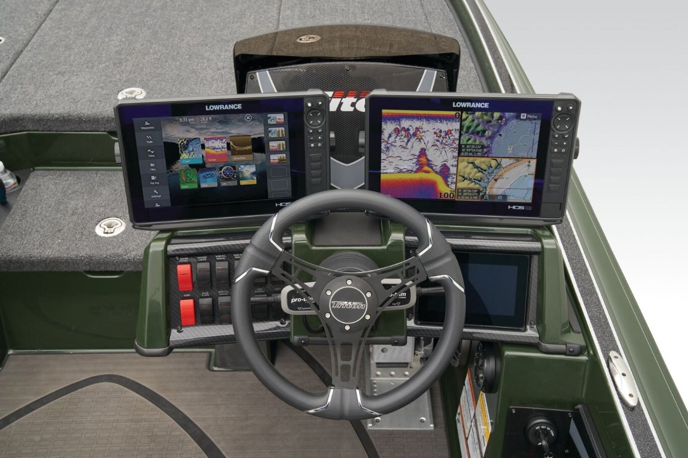 "Stay-Full" Livewell Overflow System 2-800 gph Livewell Aerator Pump with Timer 2-800 gph Livewell Recirculation Pump 2-800 gph Livewell Pumpout Hi-Capacity Rear Insulated Livewell with Divider 1-Bike Seat with Hydraulic Pedestal Seat Pole Centric II™ Pedestal Seat with Mesh Suspension 2-Front Pedestal Locations 3 TH Marine Rod Tamers, 2 Bow 1 Aft Front Deck Tool Holder Bow Trim Switch & Nav Light Switch Built-in Fish Measuring Board with Tool Holder Auto On LED Compartment Lights Stainless Steel Capped Fittings Above Rubrail Oversized Rod Lockers Passenger-Side Rod Ramp Locking Oversized Storage Boxes Built in Port Locker Rod Butt Shelf Livewell Aerator Timer Lowrance® ELITE 9 FS at Console Minn Kota® Fortrex 80/45"/US2/24V Built in Net Stow Trolling Motor Foot-Control Deck Recess Center Storage Box Tackle Organizing System