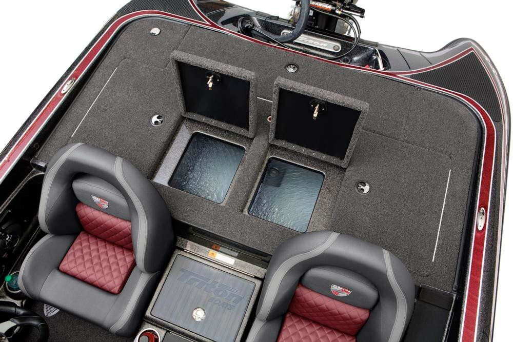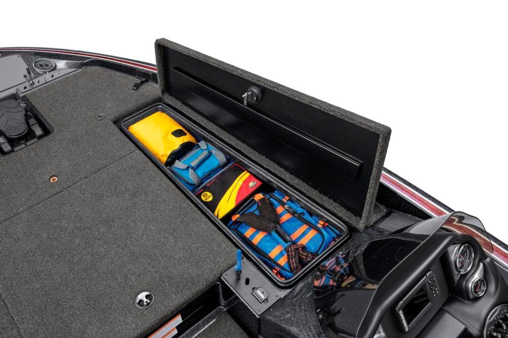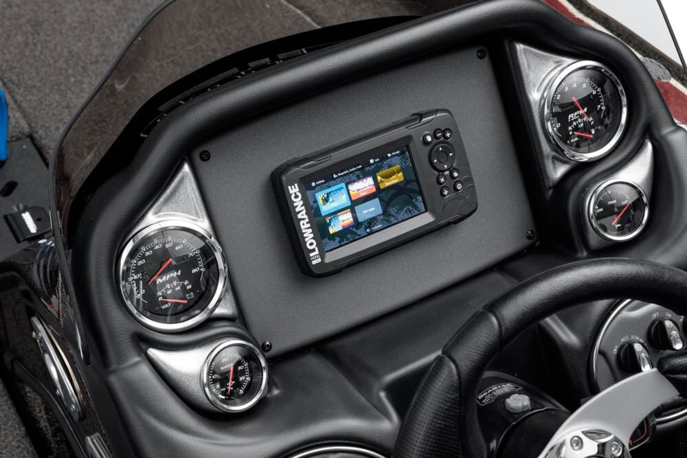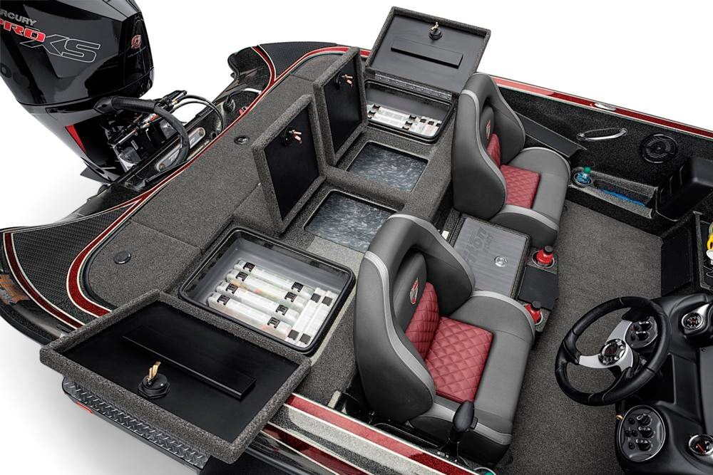 1-800 gph Livewell Aerator Pump with Timer 1-800 gph Livewell Recirculation Pump 1-800 gph Livewell Pumpout Hi-Capacity Rear Insulated Livewell with Divider 1-Bike Seat with Hydraulic Pedestal Seat Pole Centric II™ Pedestal Seat with Mesh Suspension Front Deck Drink/Bait-Holder Bow Trim Switch Stainless Steel Capped Fittings Above Rubrail Oversized Rod Lockers Passenger-Side Rod Ramp Locking Oversized Storage Boxes Livewell Aerator Timer Lowrance® Hook Reveal 5 Combo Minn Kota® Edge 70lb 24V Trolling Motor Foot-Control Deck Recess 2 Retractable Rod Buckles on Front Deck