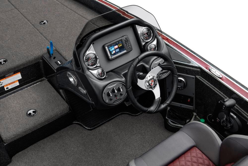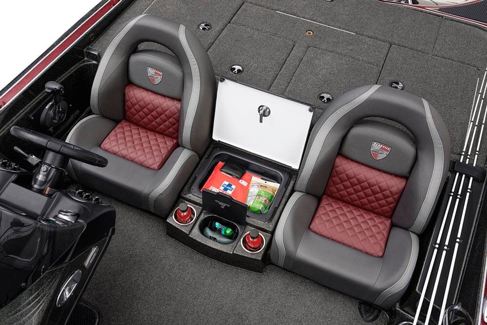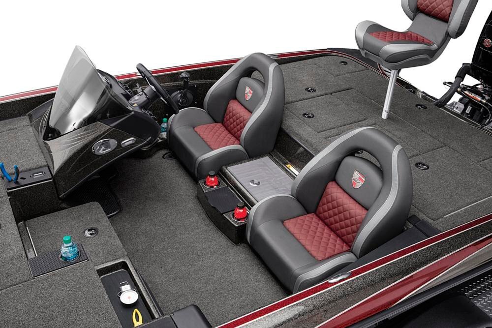 New Deluxe 3-Spoke Steering Wheel w/ Center Cap Dual Pro On Board Charger 6 x 2 (10) Standard Color Schemes to Choose From (4) Premium Color Packages to Choose From Newly Restyled Driver and Passenger Bucket Seats Center Console with Fiberglass Lid Extended Leg-Room Driver's Console Tournament Series Gauge Package Nitrogen Lid Lifts Stainless Steel Bow and Transom Eyes Stainless Steel Pull-Up Cleats Built-in Ice-Chest in Front-Deck Step Stainless steel drink holders Removable Windshield Stainless Steel Prop Chrome Fuel Fill Trolling Motor Battery Trays Only Cranking battery with tray Padded Dash with Tachometer, Speedometer, Voltmeter, Fuel, Trim and Water-Pressure Gauge Lucas® Oil Detail Kit