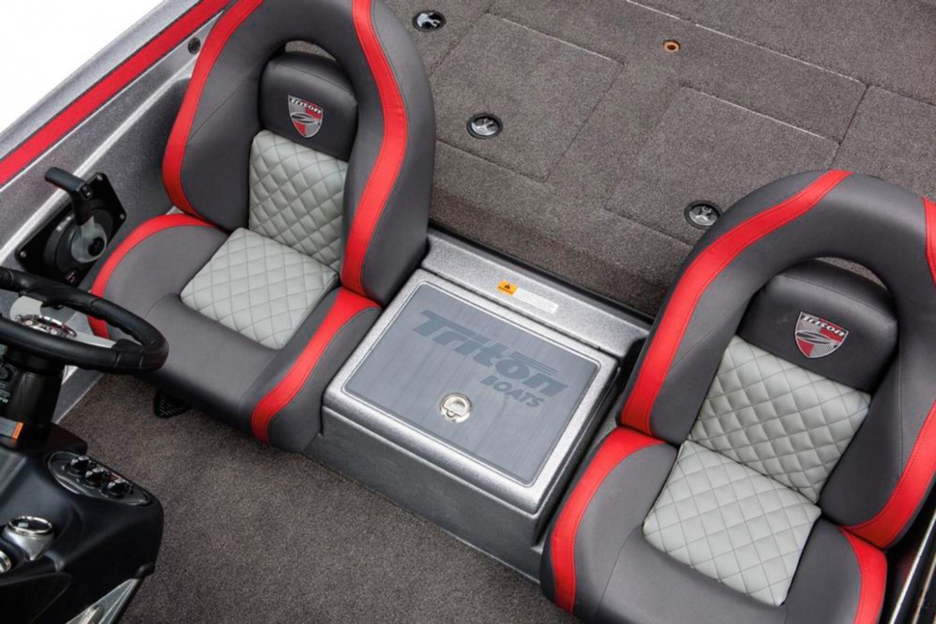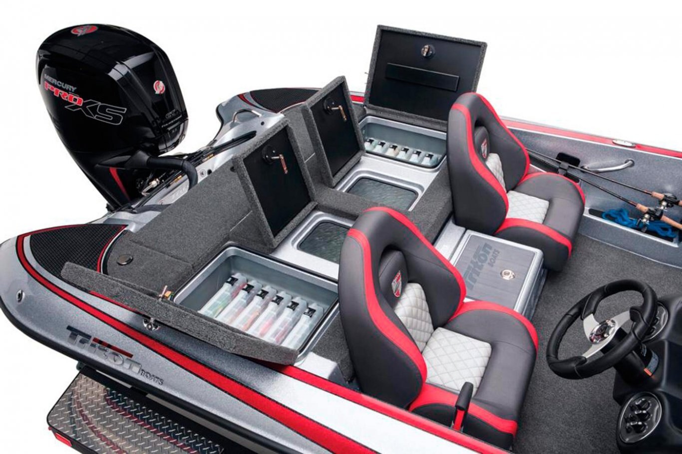 Affordable to own, easy to drive and fast to the fish, the 179 TrX is built with a performance platform that is Triton through and through. This nimble performer is ideal for maneuvering and pursuing bass in small waters. The 179 TrX is hand crafted with the same attention to detail and features as our premium rigs. Port and starboard rod lockers, a center storage compartment, built-in ice chest and more are standard. The 179 TrX rides on a custom-matched trailer with a swing tongue, making it easy to store in tight spaces.