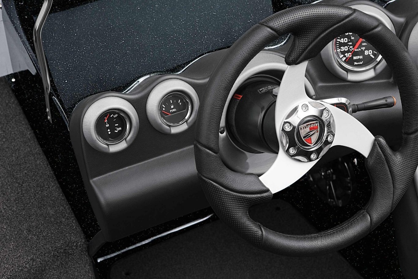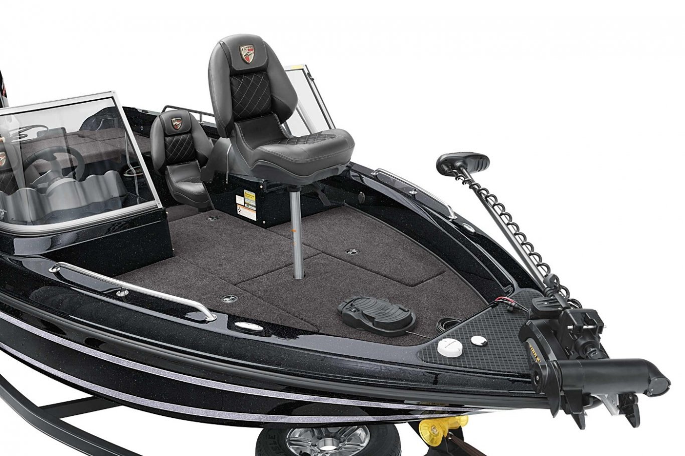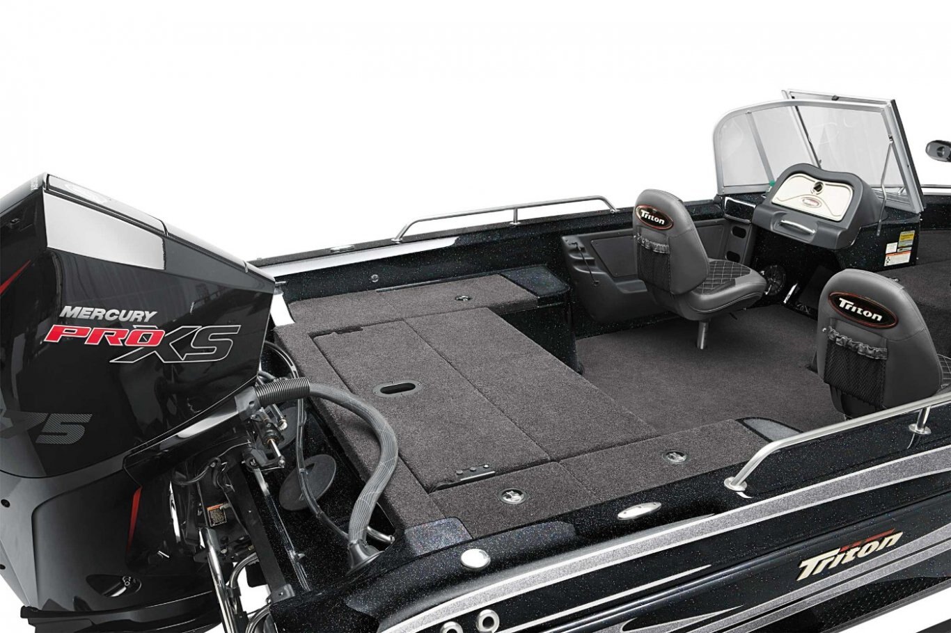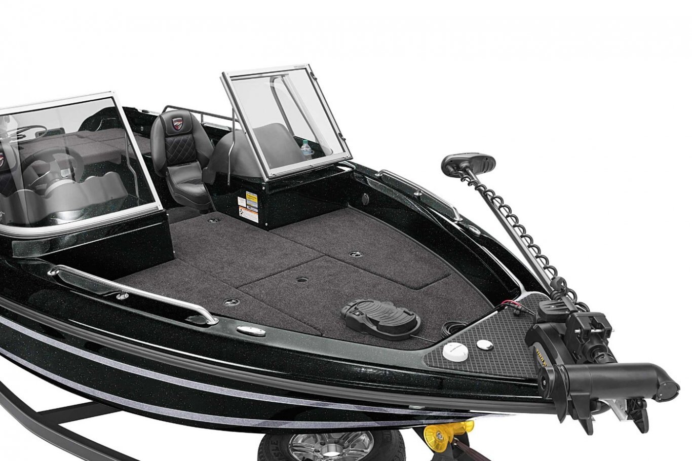New - Deluxe 3-Spoke Steering Wheel with Center Cap Dual Pro On Board Charger 15 x 3 (10) Standard Color Schemes to Choose From Extended Leg-Room Driver's Console Newly Restyled - 3 folding SAS Seats: 1 Driver Seat, 1 Passenger Seat, and 1 Pedestal Seat Clarion MM20 Stereo with 2 Speakers Passenger Console with Glove Box Padded Dash with Tachometer, Speedometer, Fuel and Trim Nitrogen Lid Lifts Stainless Steel Bow and Transom Eyes Stainless Steel Pull-Up Cleats Folding Rear Bench Seat Non-Skid Fiberglass Cockpit Flooring Stainless Steel Passenger Drink Holder Stainless Steel Prop Remote drain plug Trolling Motor Battery Trays Only Cranking battery with tray