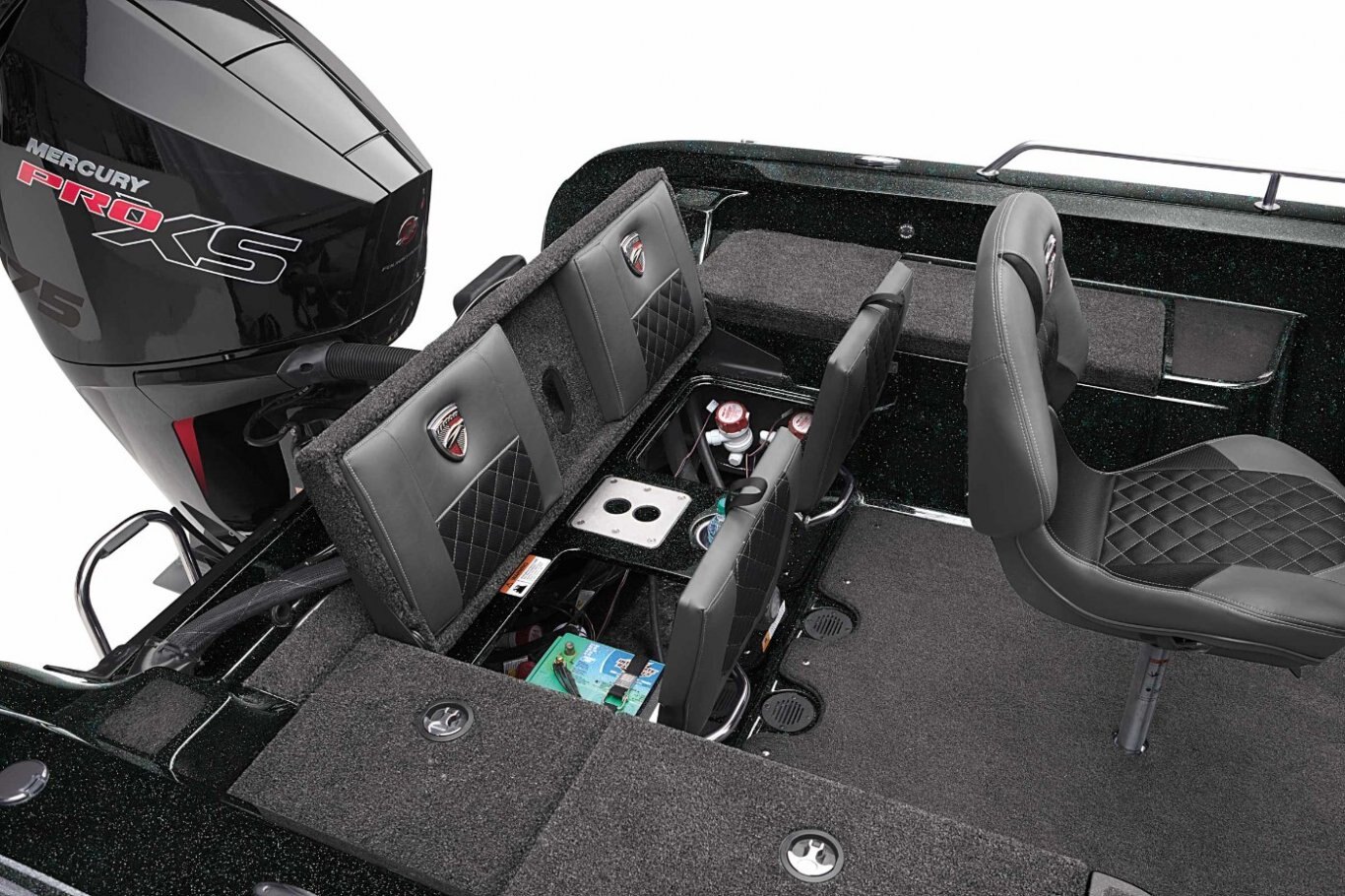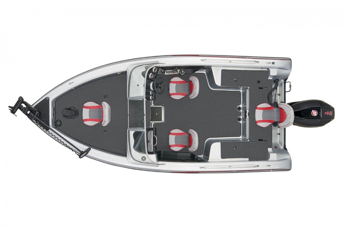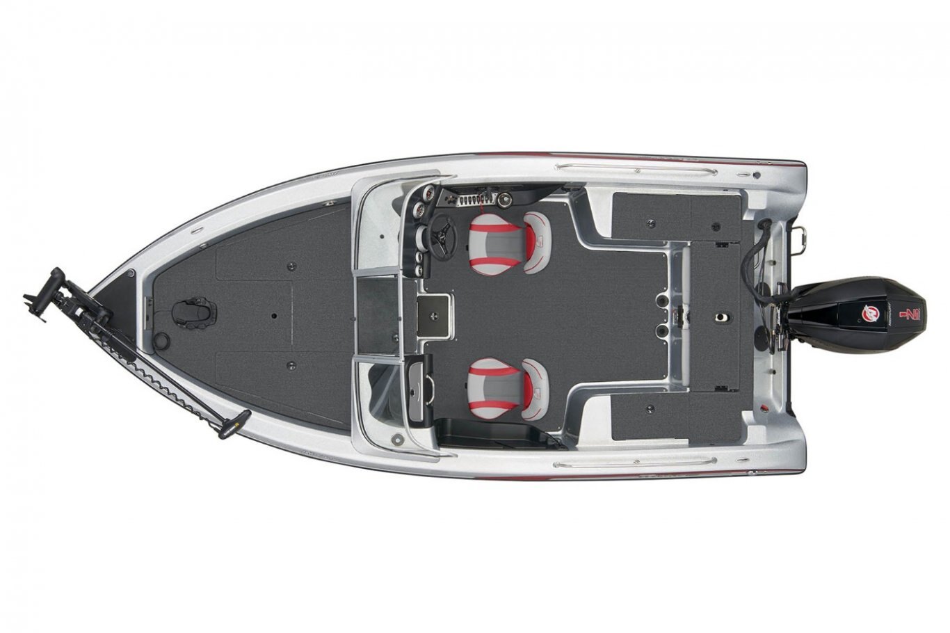 "Stay-Full" Livewell Overflow System 1-800 gph Livewell Pumpout 800 gph Baitwell Aerator Pump Hi-Capacity Rear Insulated Livewell with Divider Aerated Livewell in Aft Deck Bow Trim Switch Stainless Steel Capped Fittings Above Rubrail Passenger Side Rod Ramp Locking Oversized Storage Boxes Center Rod Storage System Livewell Aerator Timer Lowrance® Hook Reveal 5 Combo Minn Kota® Terrova 80/I-Pilot/60/US2