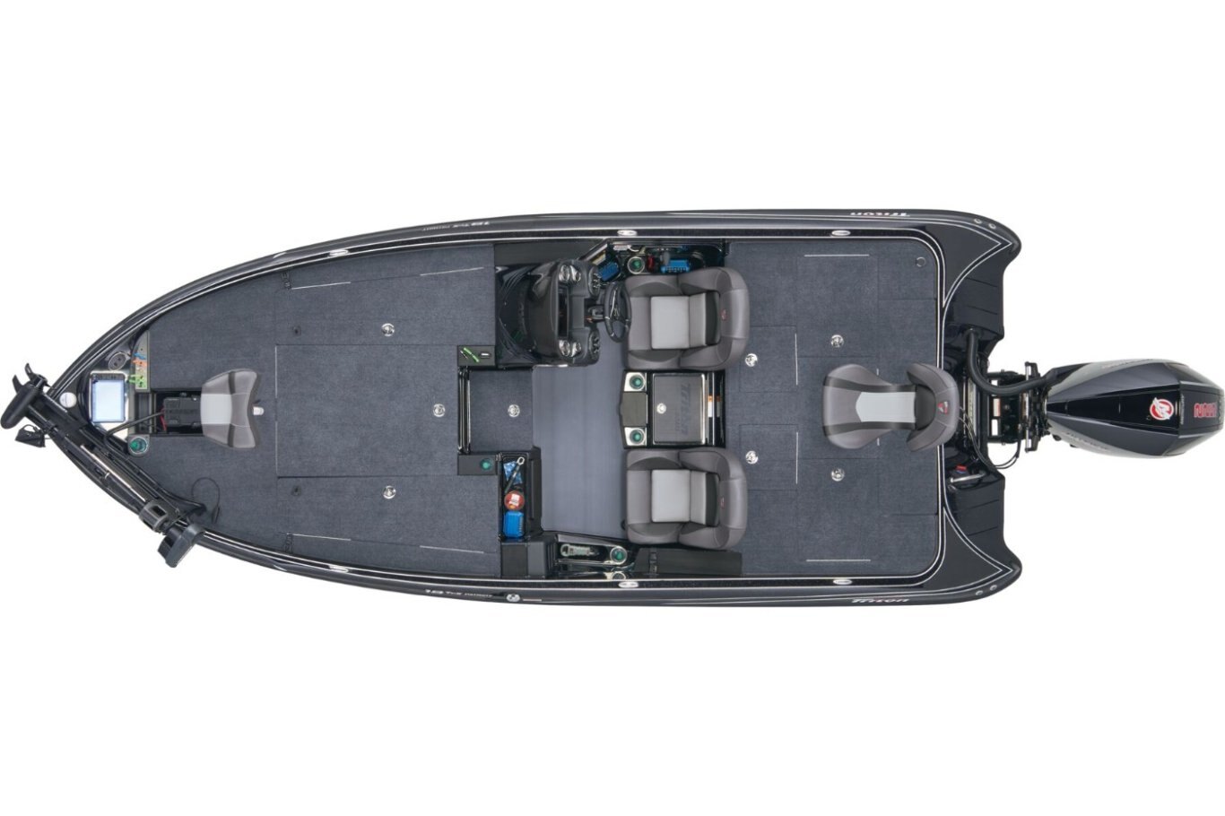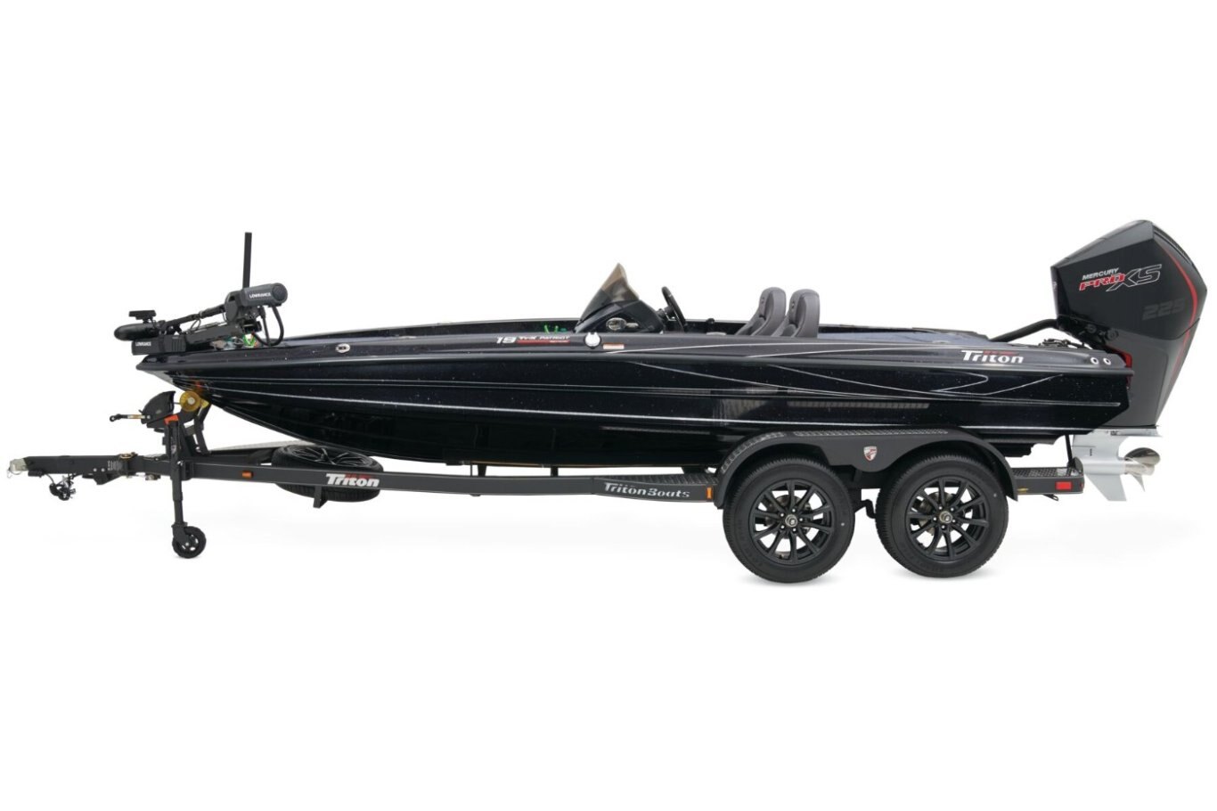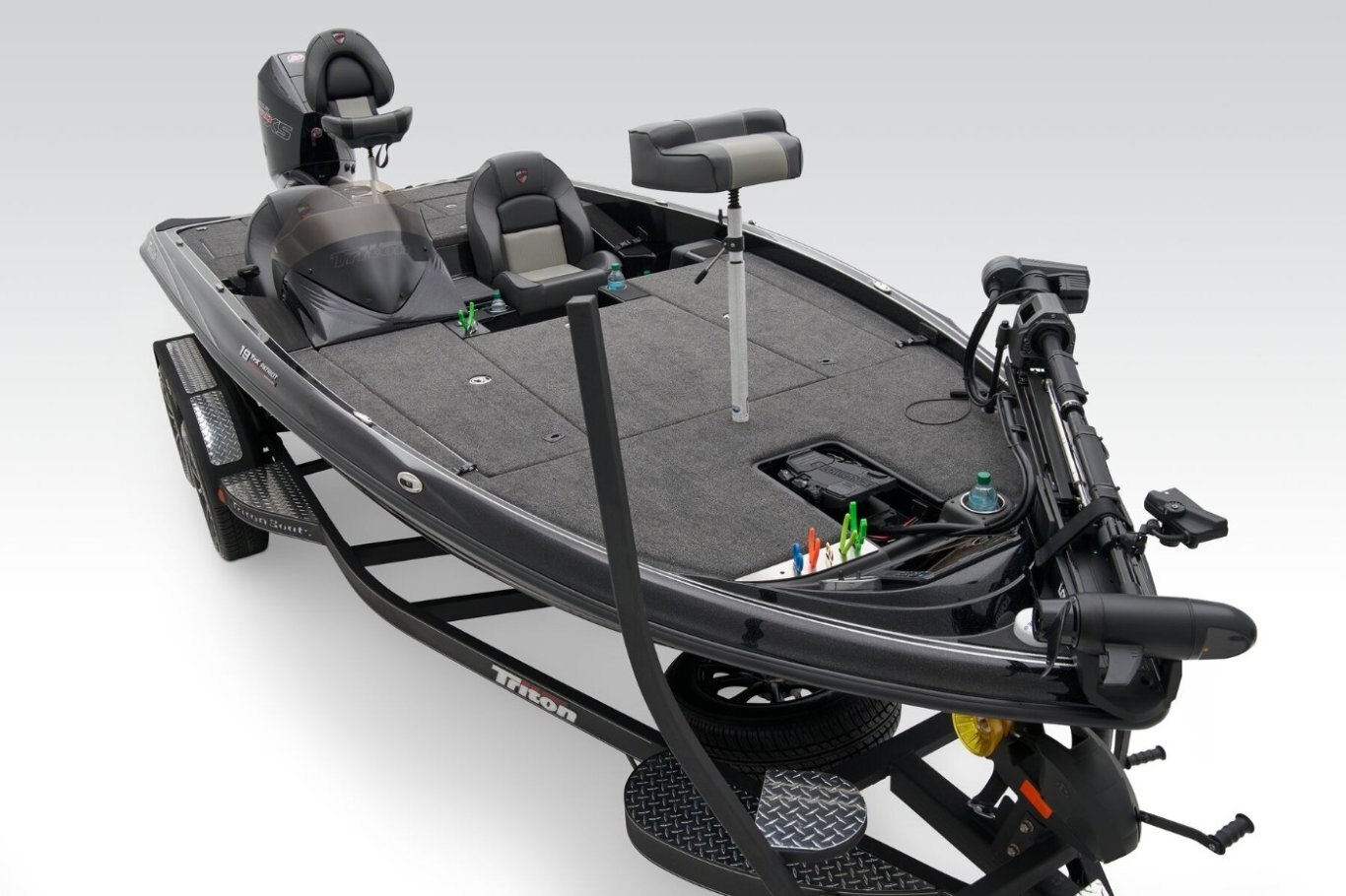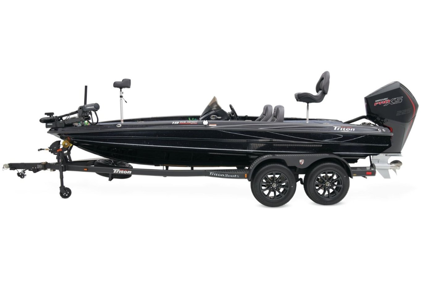 The 19 TrX Patriot is loaded with features and high-performance stealth in a value package that is ideal for the hardcore weekend tournament angler. You get big-rig amenities inspired by championship results in a tournament-ready 19' class package. Armed with 225 horses, the 19 TrX Patriot is factory rigged with a Mercury® outboard, Lowrance® electronics, and Lowrance® trolling motor. There is no wasted space in a Triton—an 8' rod rack with 12-rod capacity, center storage box tackle organizing system and oversized storage compartments throughout mean you never leave anything behind. With a custom designed, road-trip ready trailer, the 19 TrX Patriot is ready to roll.