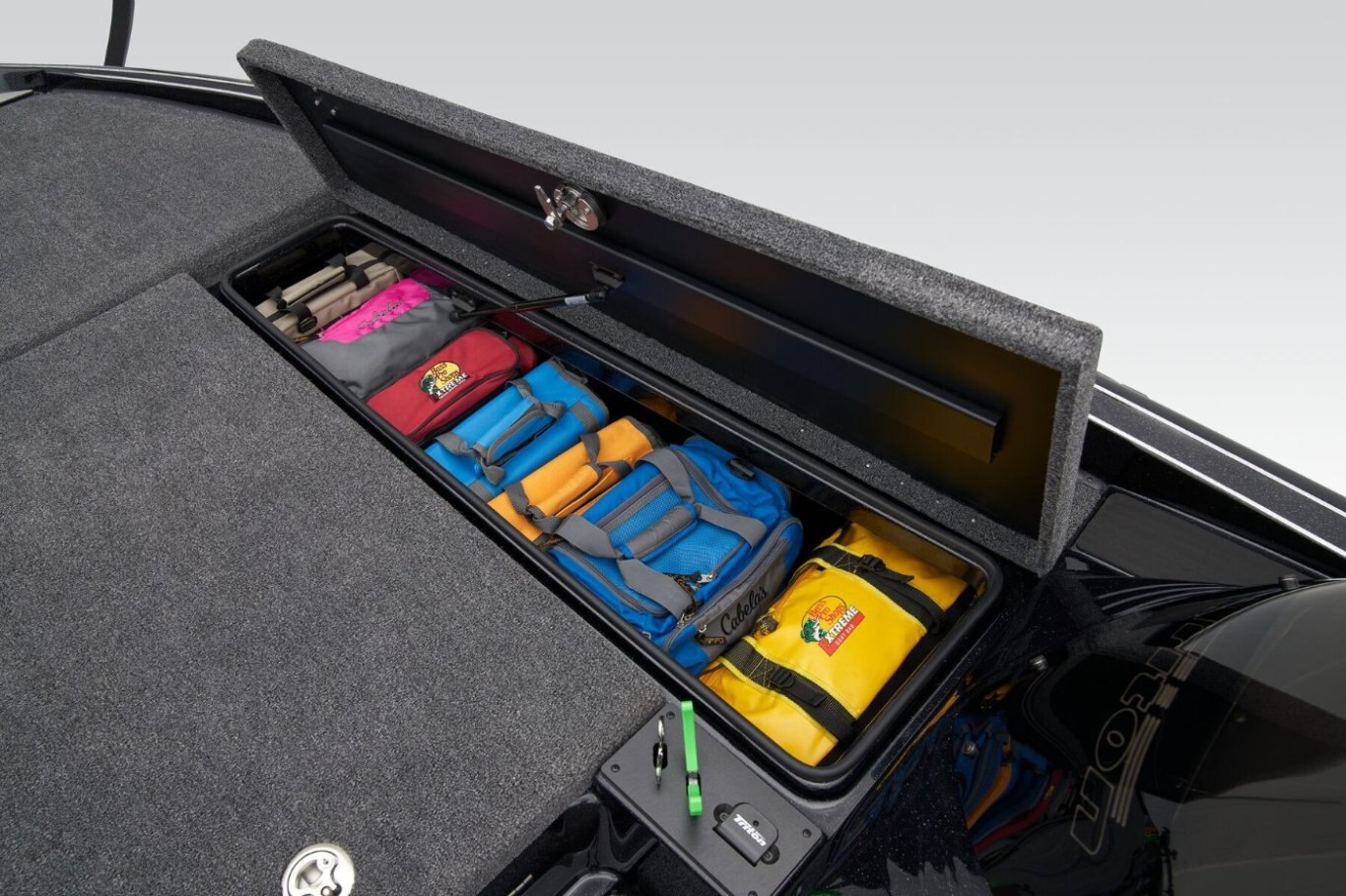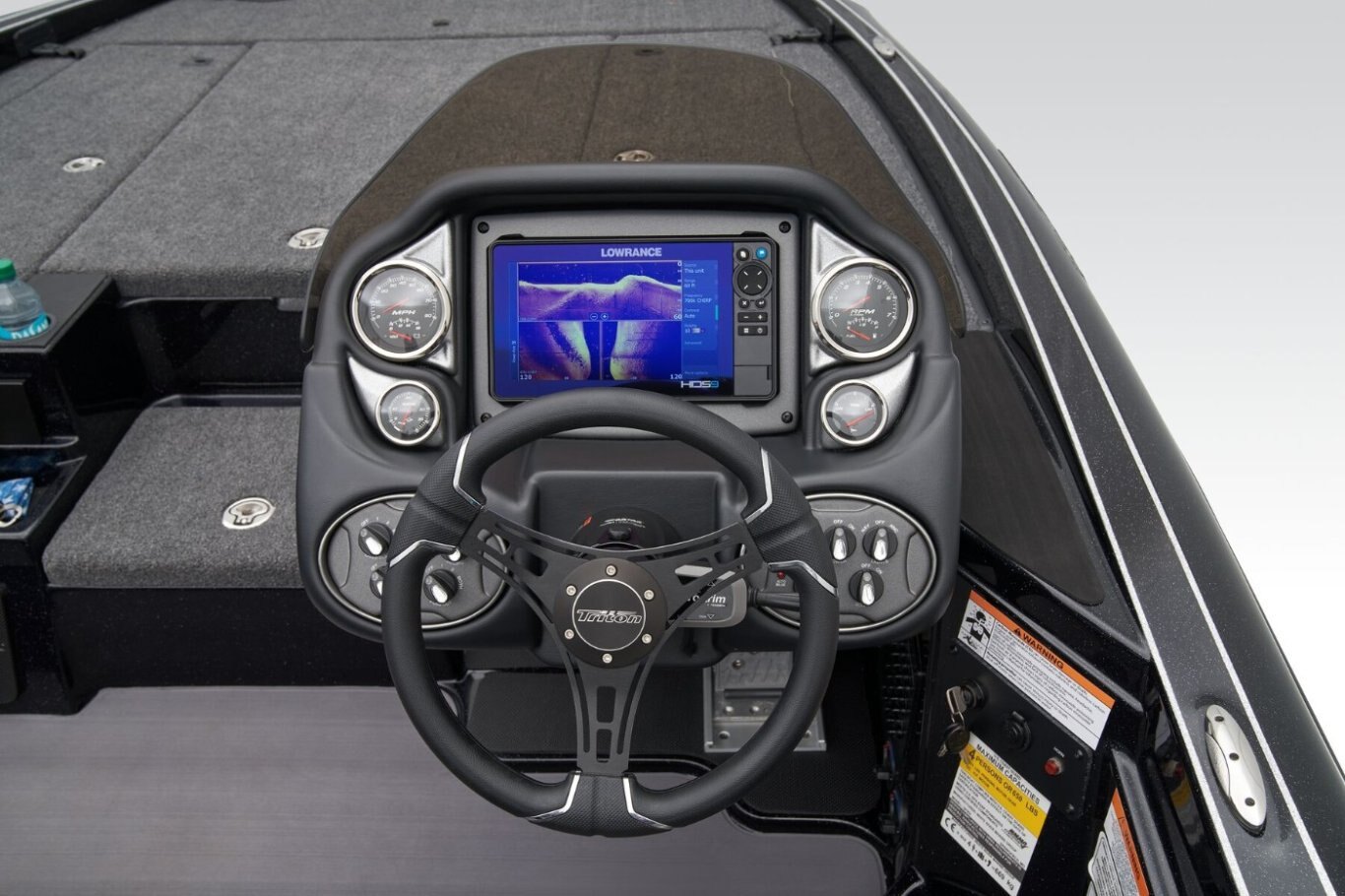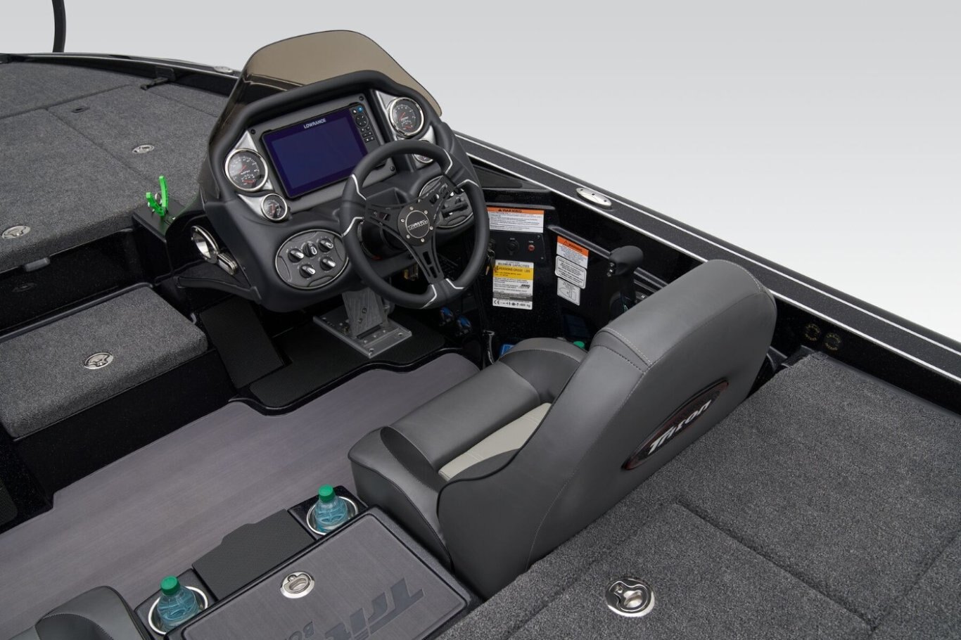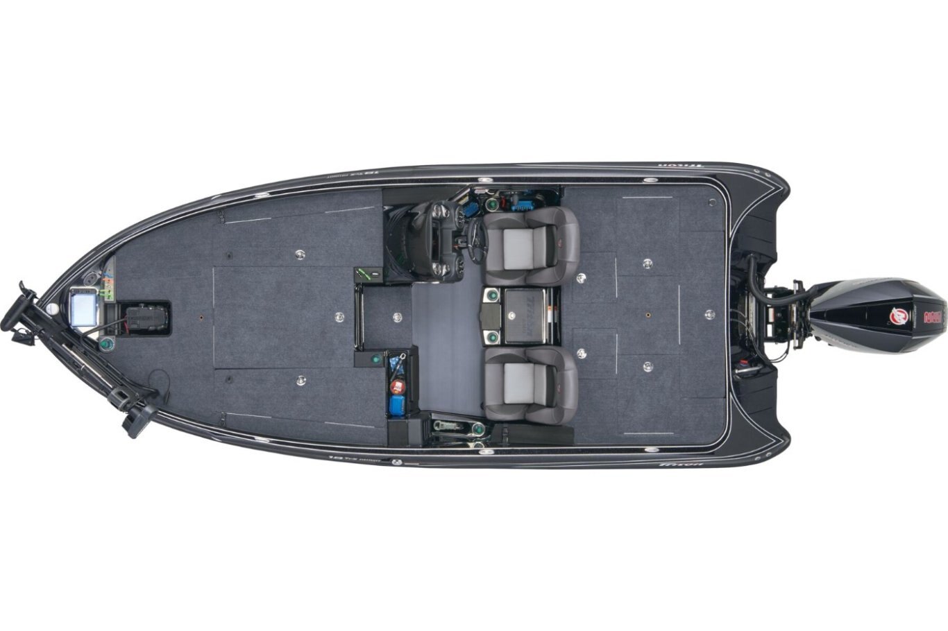 The 19 TrX Patriot is loaded with features and high-performance stealth in a value package that is ideal for the hardcore weekend tournament angler. You get big-rig amenities inspired by championship results in a tournament-ready 19' class package. Armed with 225 horses, the 19 TrX Patriot is factory rigged with a Mercury® outboard, Lowrance® electronics, and Lowrance® trolling motor. There is no wasted space in a Triton—an 8' rod rack with 12-rod capacity, center storage box tackle organizing system and oversized storage compartments throughout mean you never leave anything behind. With a custom designed, road-trip ready trailer, the 19 TrX Patriot is ready to roll.
