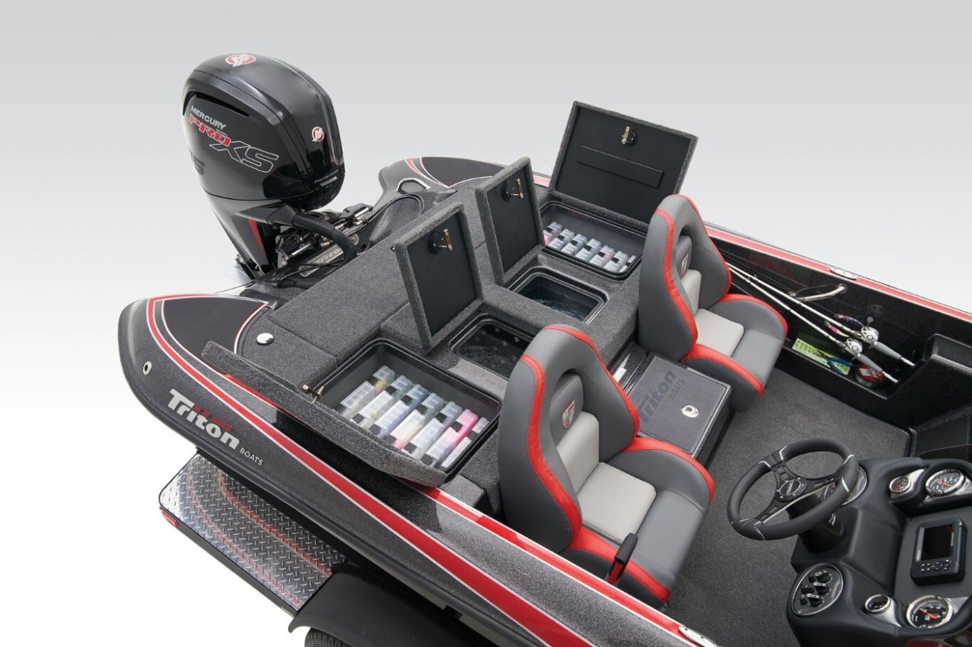 Affordable to own, easy to drive and fast to the fish, the 179 TrX is built with a performance platform that is Triton through and through. This nimble performer is ideal for maneuvering and pursuing bass in small waters. The 179 TrX is hand crafted with the same attention to detail and features as our premium rigs. Port and starboard rod lockers, a center storage compartment, built-in ice chest and more are standard. The 179 TrX rides on a custom-matched trailer with a swing tongue, making it easy to store in tight spaces.