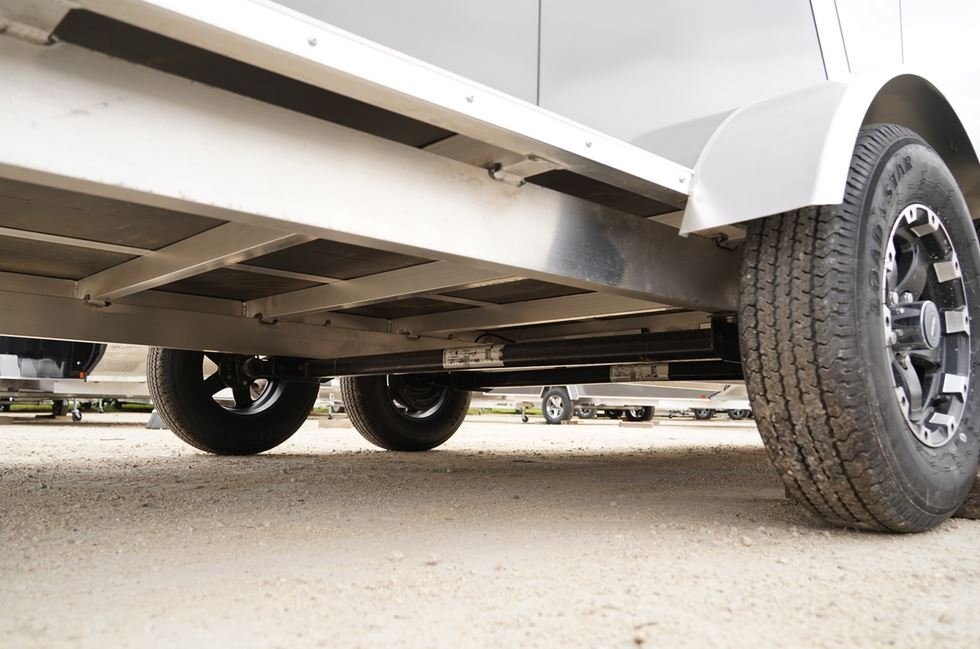 13” radial tires (8’ wide model) or 14” radial tires (7’ wide model) with aluminum rims.