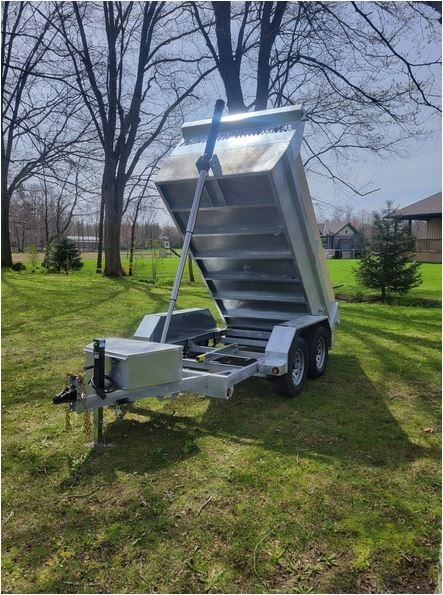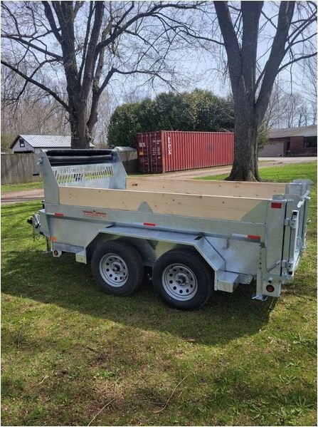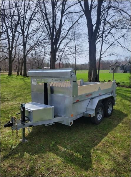 • 3500 LB and 5200 LB axles • All axles with electric brakes • 205/75R15, 225/75R15 wheels • Radial tires • Easy lube hubs • Hinge pins zinc plated • 7 ton telescopic cylinders • Dump at a minimum of 46 degrees • 4” drop axles standard • 7k drop down jack • All Hinges, pins have grease fittings • Deep cycle battery • Barn door/spreader gate • Steel tool box with lid stay and locking latch • Power up gravity down pump • 5" and 6" C Channel frame • 3" C channel floor 16" centers • Double wall for strength and no damage on exterior wall • 11 gauge (.125) inner wall 14 gauge (.083) outer wall • 7 gauge (.188) floor • 2 5/16" adjustable coupler • LED lights • Galvanized finish (paint on request) • 6 heavy duty D-rings recessed inside of dump • 28" deep sides • 7 gauge floor • Tarp kit built in house, fitted with bearings • Dump prop • Drop legs • Board extension