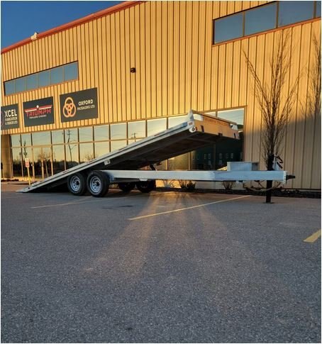 • 7000 LB axles • Slipper spring suspension • 235/80R16 wheels • Radial Tires • Easy lube hubs • 8” C Channel Frame • 8" C Channel Tongue • 3" C channel cross members 16" centers • 2 5/16" adjustable coupler • 12k Jack • 7 way round plug • Sealed wire harness • LED lights • Hot dip galvanized finish • Hardwood decking • Stake pockets and rub rails on sides of trailer • Knife edge for smooth transition • Valve to adjust for a smooth decent on gravity tilts • 15 degree slope on deck overs, 12 degree slope on between fender