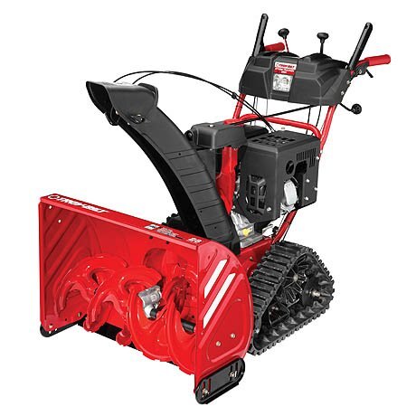 The Storm Tracker™ 2890 two-stage snow thrower features a 28" clearing width, Touch 'n Turn® power steering and heated hand grips, plus an in-dash headlight for better visibility. Three different SelecTrac Drive modes shift the unit's weight for optimum performance on hard-packed or icy snow or on gravel driveways.