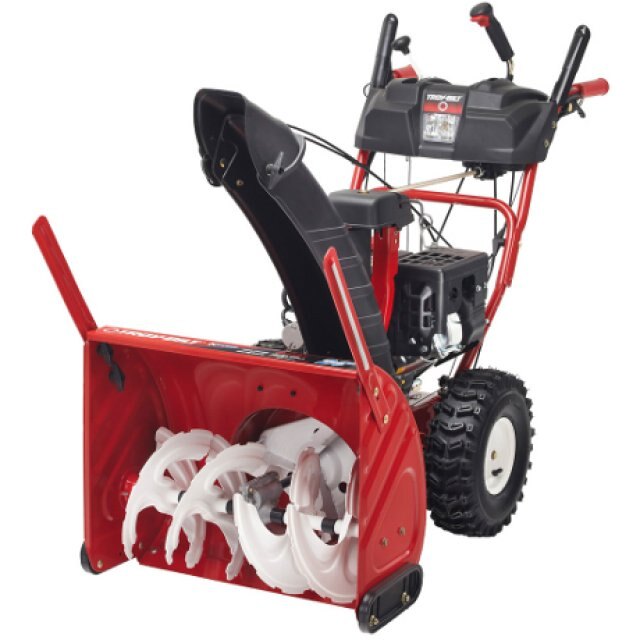 The Troy-Bilt 24" two-stage snow thrower combines solid engineering and high-quality components with strict attention to detail. This two-stage snow thrower comes equipped with a reliable 208cc Troy-Bilt engine, 15" X-Trac™ tires and an extended, clog resistant polymer discharge chute that propels snow farther away from you before the wind can catch it. Convenient features like Just One Hand operation allows you to steer with one hand, freeing the other hand to adjust the chute direction without stopping.