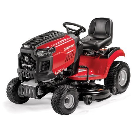 The Super Bronco™ lawn tractor is built to handle big yards and big challenges with its powerful 547cc Troy-Bilt® engine and durable cast-iron front axle. The Super Bronco 42 also features a foot-controlled hydrostatic transmission that delivers smooth, responsive control, while the rugged 13-gauge steel cutting deck with four deck wheels creates a perfect cut. And the high-back seat will keep you comfortable while mowing your larger yard.