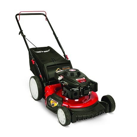 Troy-Bilt's TB120 walk-behind mower's TriAction® cutting system features a rake bumper to lift grass upright, a specially designed blade for a finer mulch and a symmetrical deck for superior grass flow, eliminating clumping. The TB120 push mower is powered by an easy starting 159cc* Troy-Bilt OHV engine and equipped with 11" rear wheels for all terrain types, dual lever deck height adjustment and 3-in-1 discharge capability.